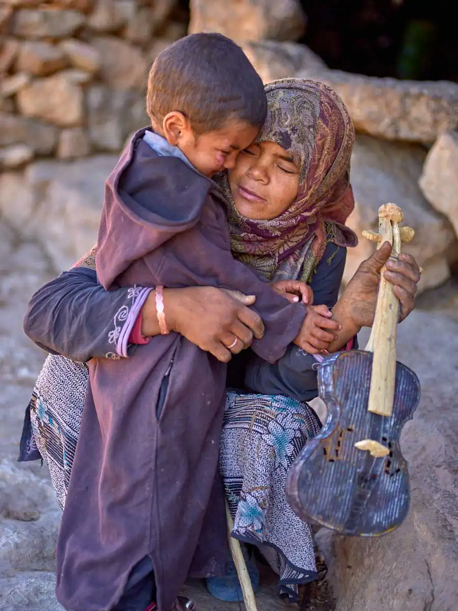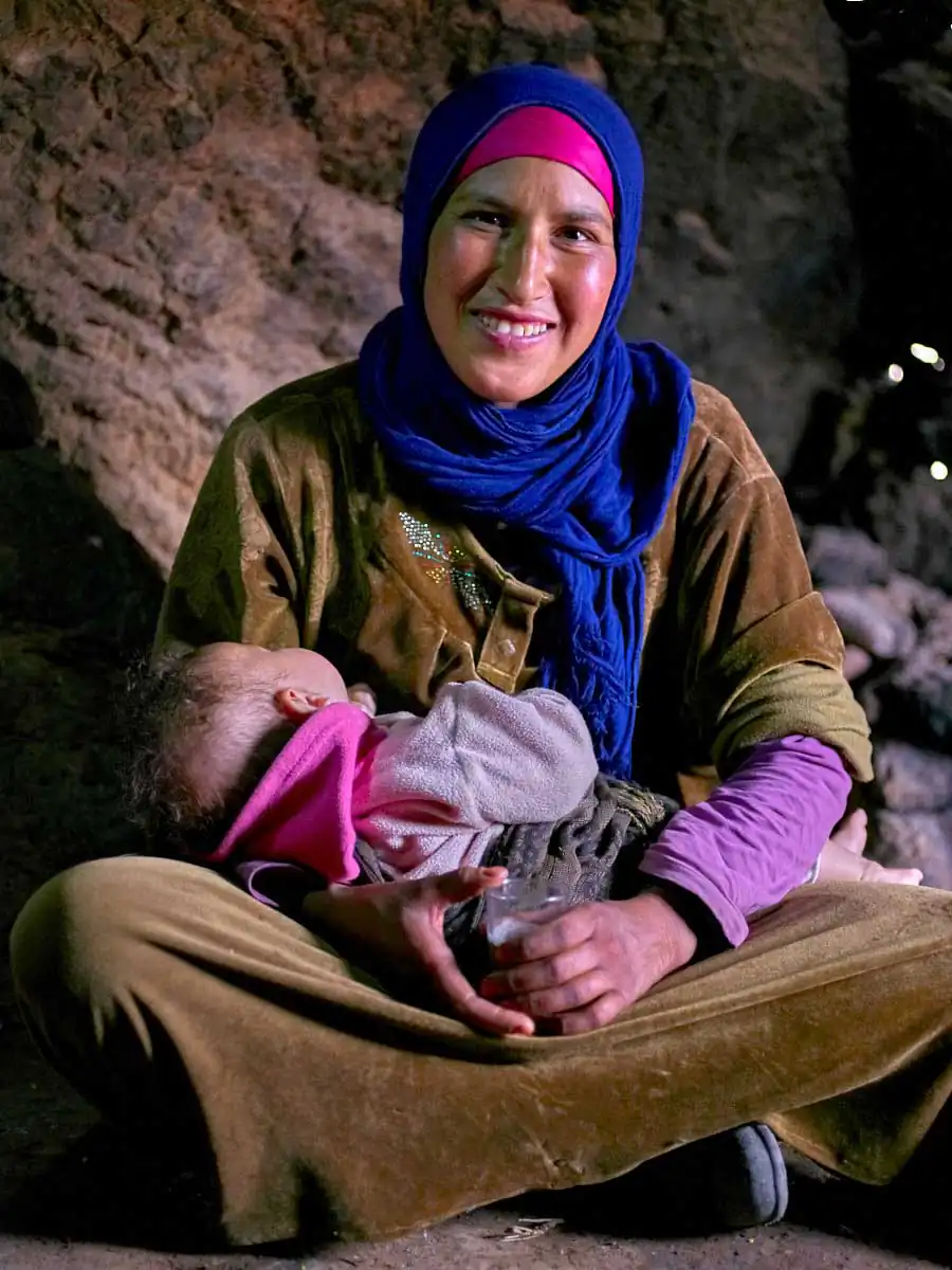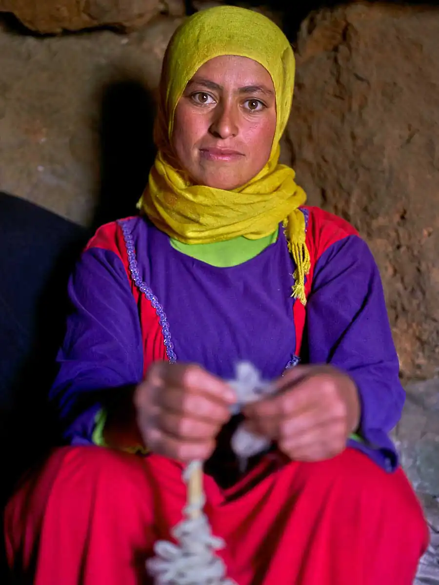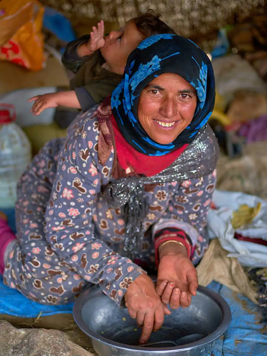 For nomad women life can be especially difficult. Starting their days at the crack of dawn when they leave their caves or tents to wander around the nearby mountainsides collecting water and wood on foot it can be several hours to amass what they need. Their existence is also one of isolation with limited contact to the outside world unlike the menfolk who travel to nearby villages and cities to shop for their daily necessities.
