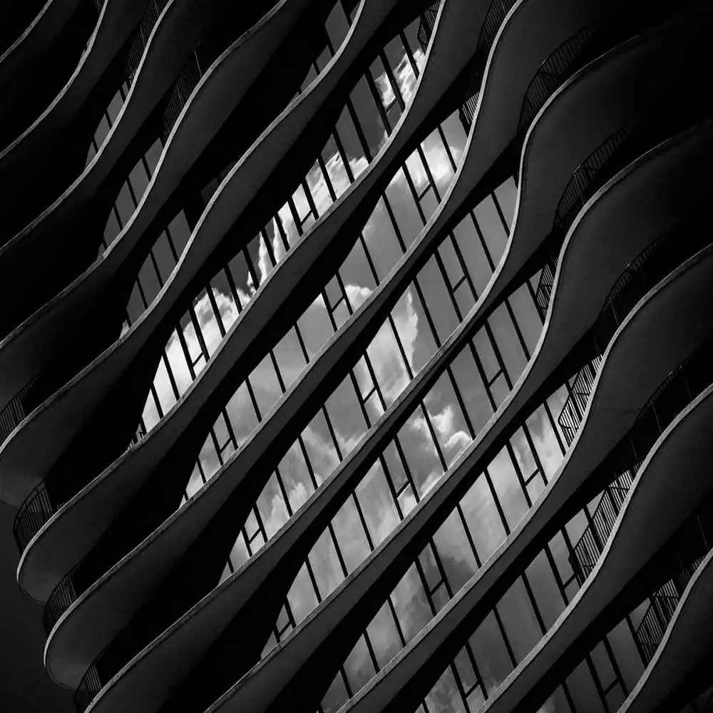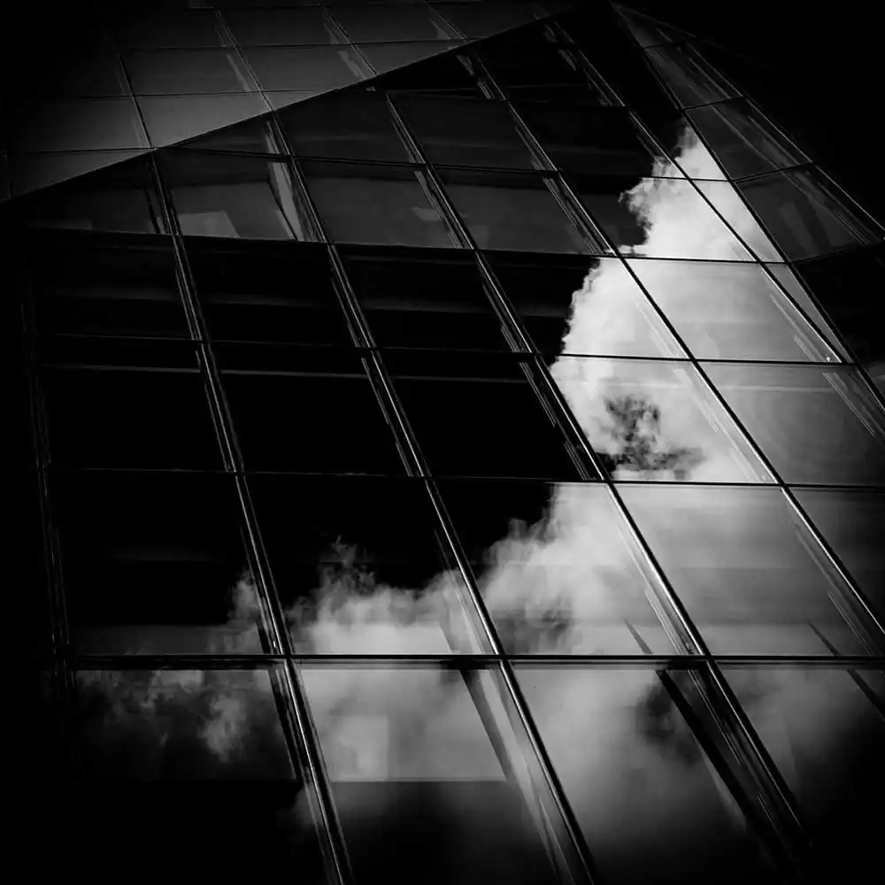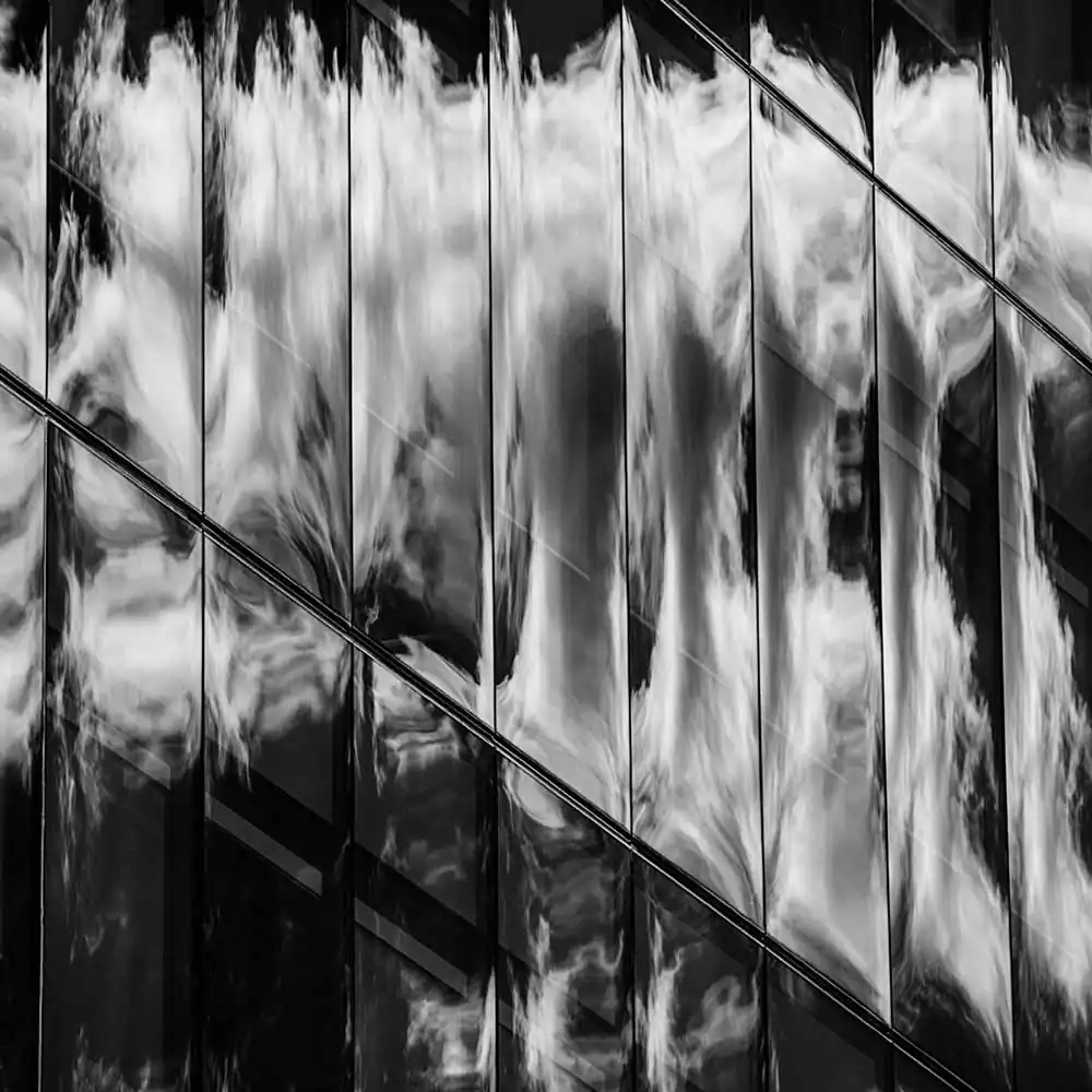 We’re accustomed to seeing something inspiring and expansive in images of great, glittering cityscapes and photos of beautiful blue skies dotted with fluffy clouds. But here, the city and the sky jostle for space. They seem almost too big for each other. Buildings. Clouds. The basic elements are unmistakable. The contrasts may seem familiar. But as we linger, the contrasts become more nuanced, even a bit disorienting — it’s not always clear which way is up, or what is sky and what is reflection. Windows become mirrors, open spaces are hemmed in by hyper-rational grids, the natural and the man-made collide. Are these skyscrapers blocking our view of the sky, or do they extend our sight like monumental periscopes? Perhaps the imposing structures that often block our view of the sky have become tools for finding it again. [Official Website]