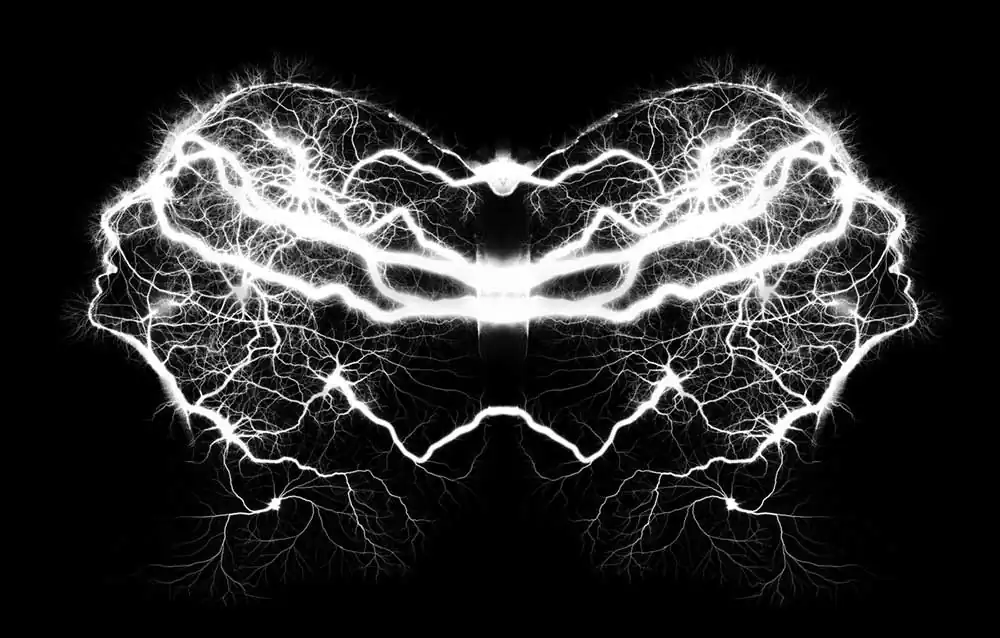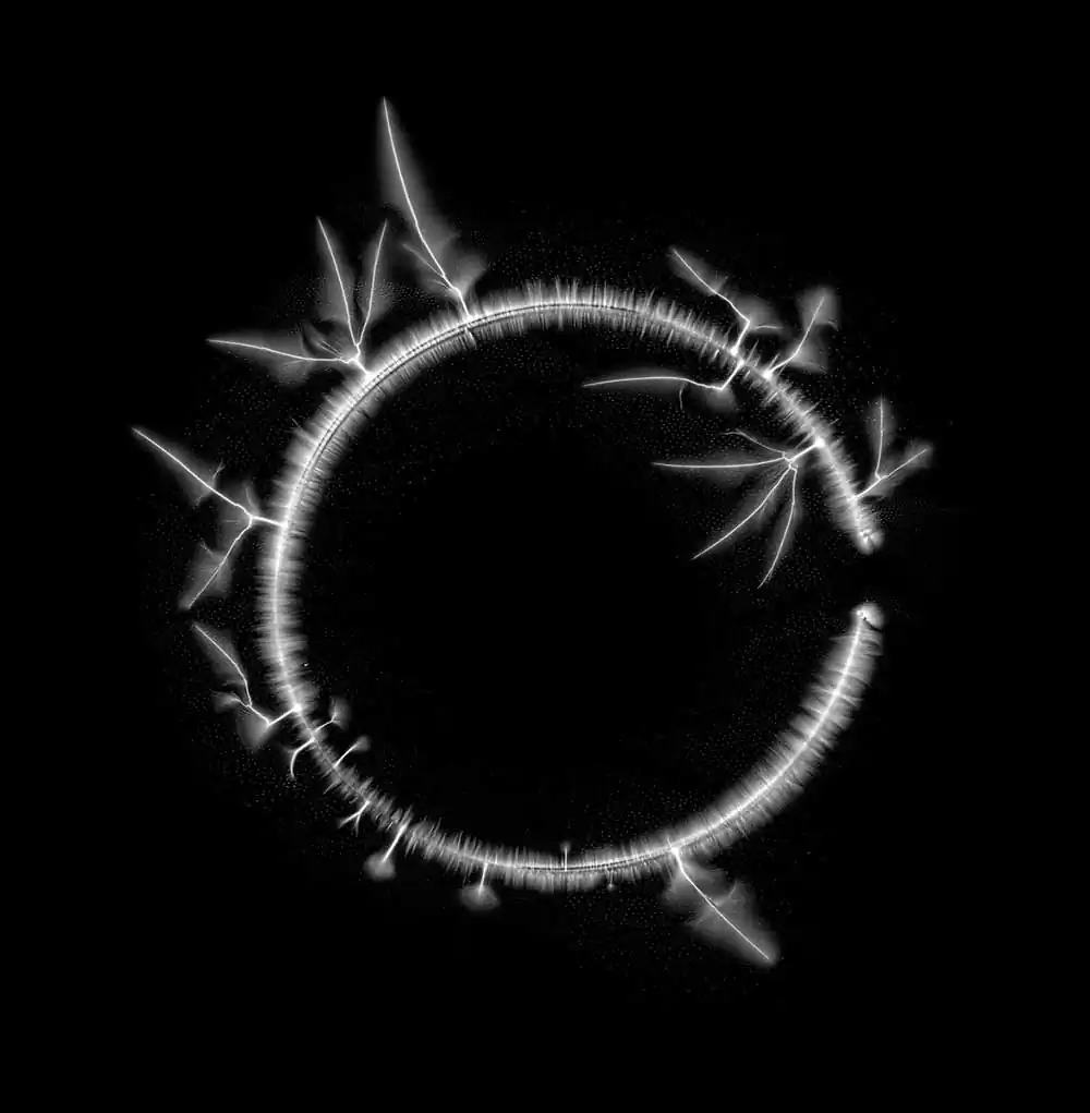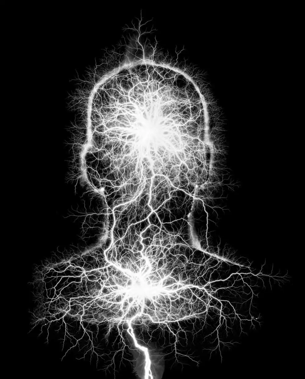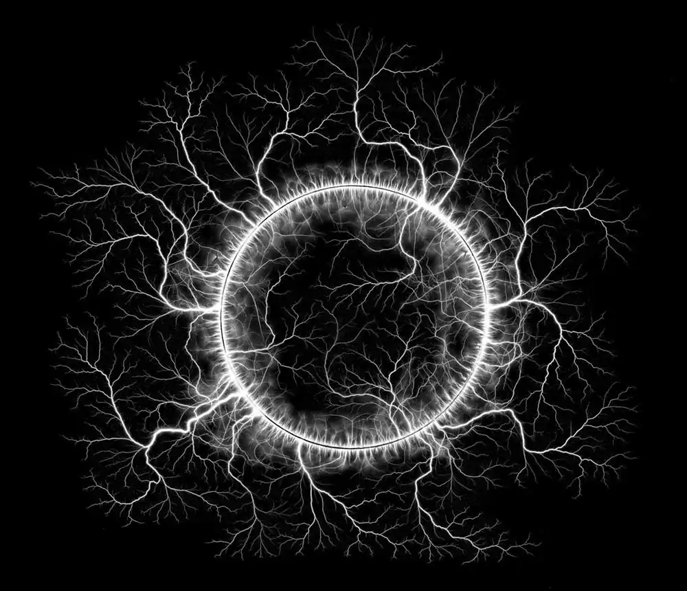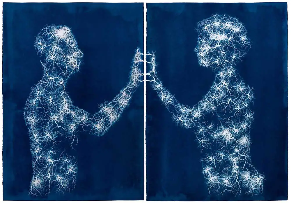 These photographs are the result of a research process initiated in 2005. The images were created by applying a high voltage current directly on the photosensitive material to be later positivized on baryta paper or by contact on cyanotype. Consequently, the process is completely analog. Each representation thus obtained is a unique and unrepeatable fractal image that I control to create portraits of people and flowers; a metaphor of the functioning of the real in the different levels of its existence, from the greatest to the smallest. The term Melothesia that titles the series designates in Greek the affective relation by affinity between all things, terrestrial and celestial, that populate the universe.