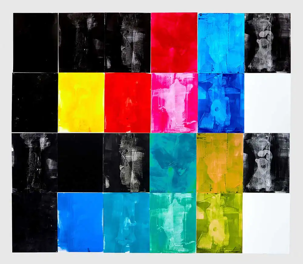 Making an art object from the artifacts of photography’s production materials, tests the boundaries of what constitutes a photograph, and the work of Rita Maas is no exception. With the Residual Ink Drawings project, Maas collects empty printer ink cartridges and empties the residual ink onto photo rag paper. Once dried, they are scanned and reproduced as inkjet prints, before being assembled into a final abstract piece. Maas takes the underbelly of digital printing, so ubiquitous in photography, and transforms the raw element of ink into a representation of itself, together with the traces of the cartridges themselves.