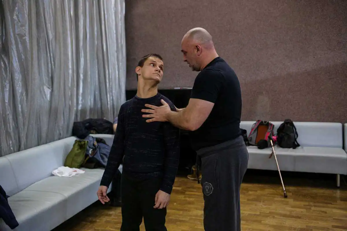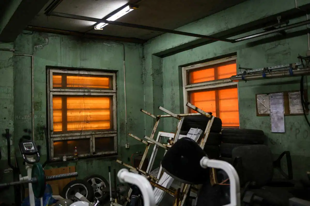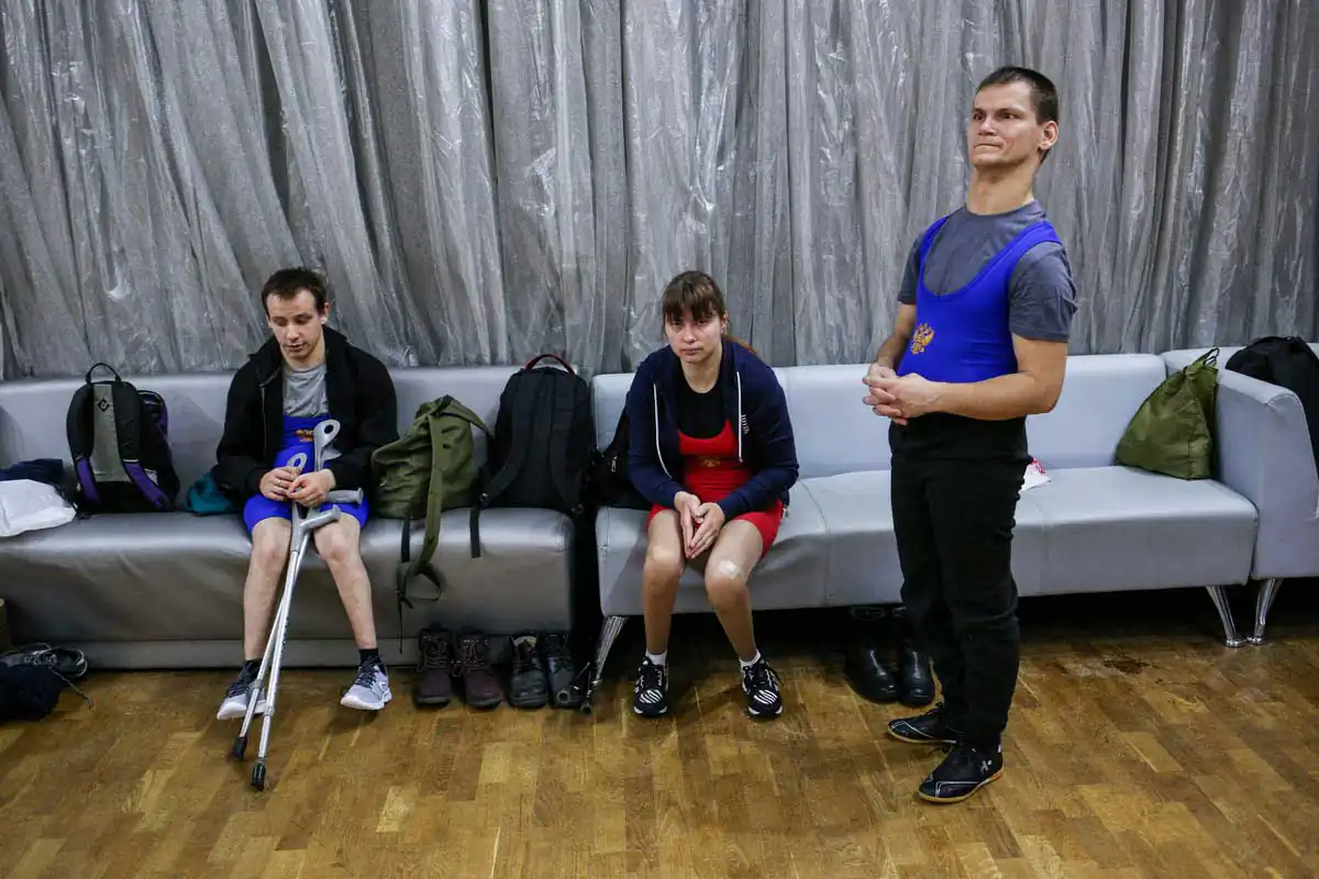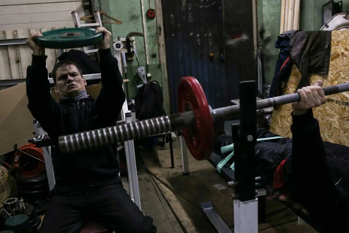 Here, in a building that once was occupied by a tire shop, Kolya Afanasyev and three more men with musculoskeletal disorders decided to do their powerlifting workouts, despite the lack of heating and sports gear (for example, they have to do the benchpress on a too-short handmade bench with the head on a chair).