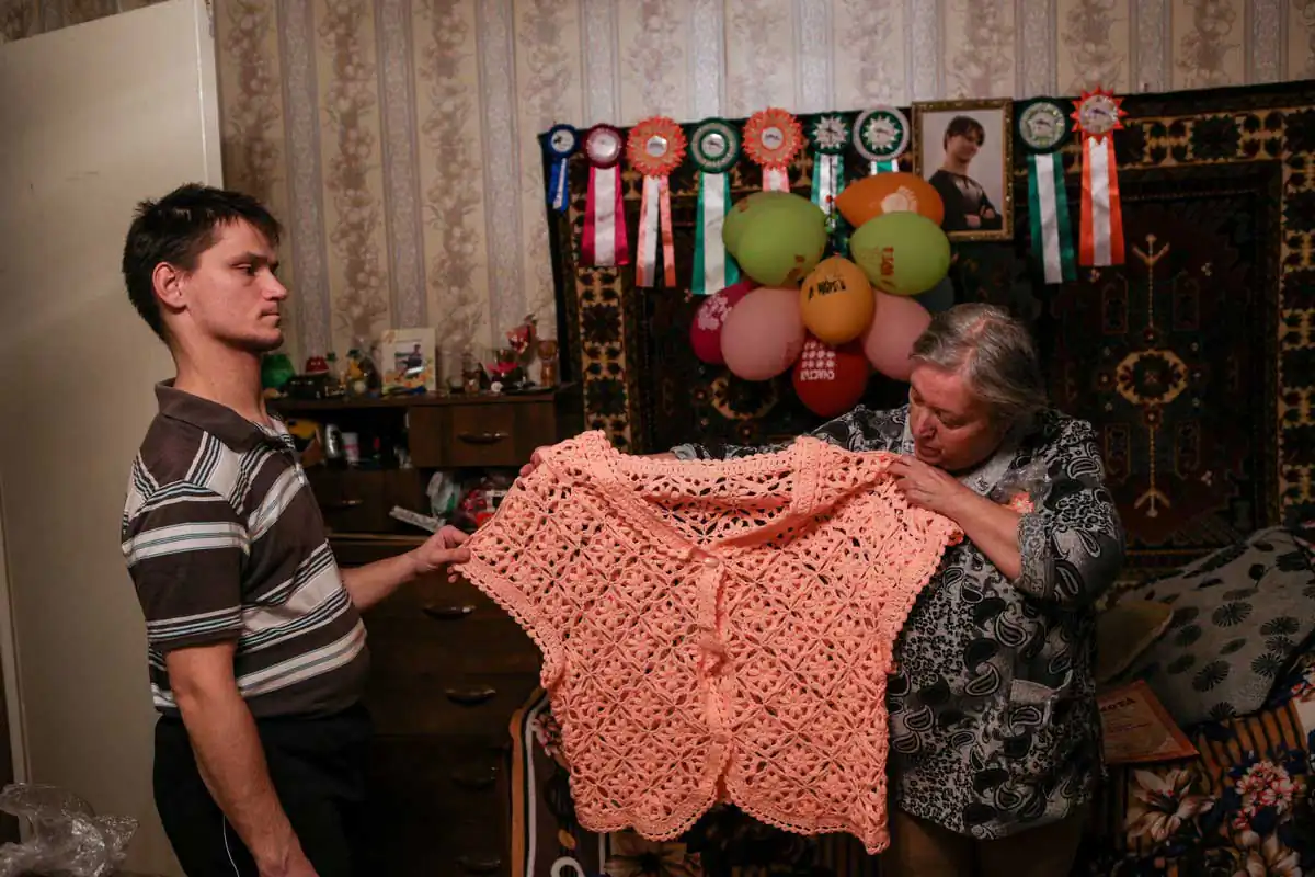 In the care home, he got his education and learned the basic adult life skills. “We used to go to a village in Leningrad region where people taught us some farming and how to live independently. There were sewing and knitting workshops there. But I learned to knit from a nurse”. Knitting was easy to master; in just a week, he could both knit and knook.