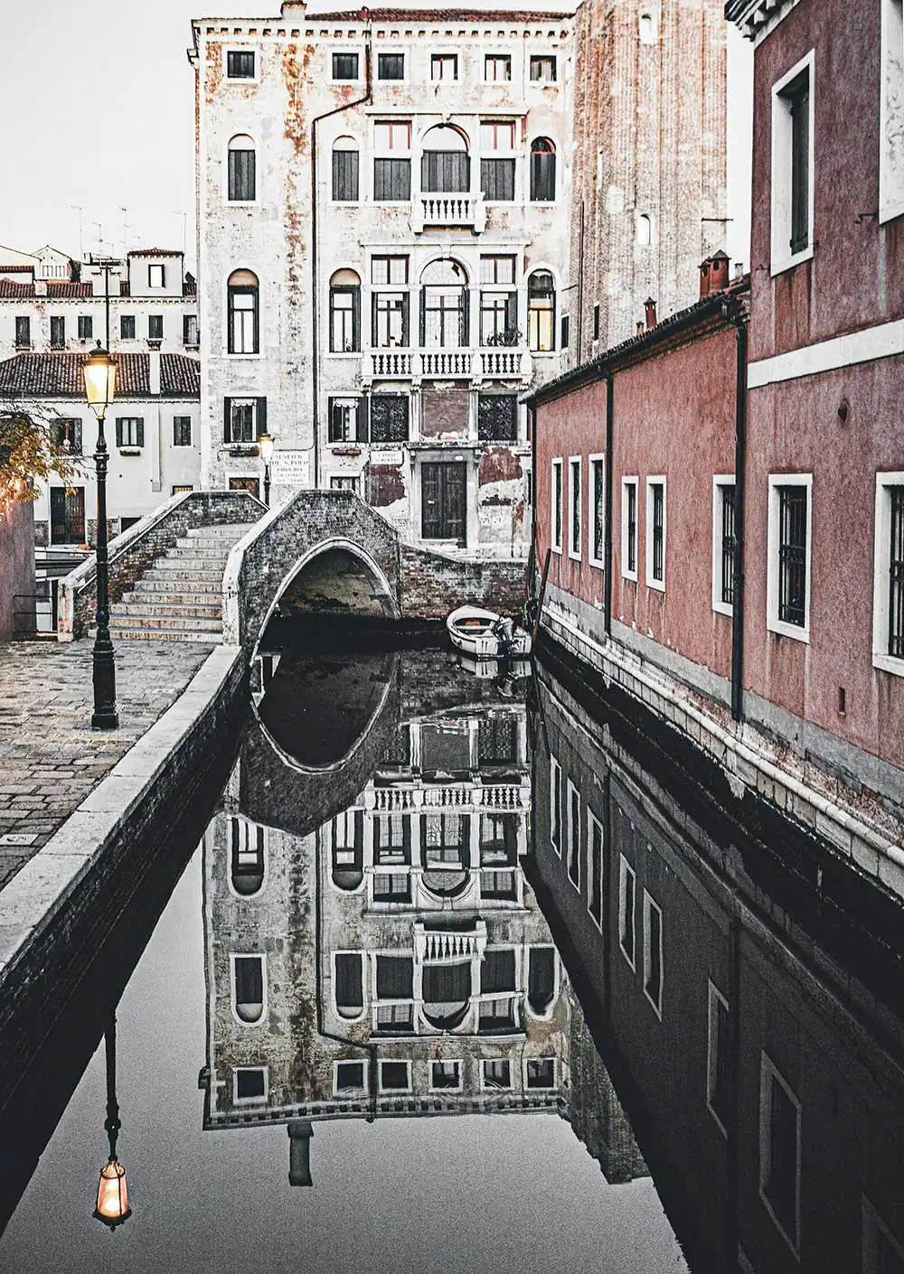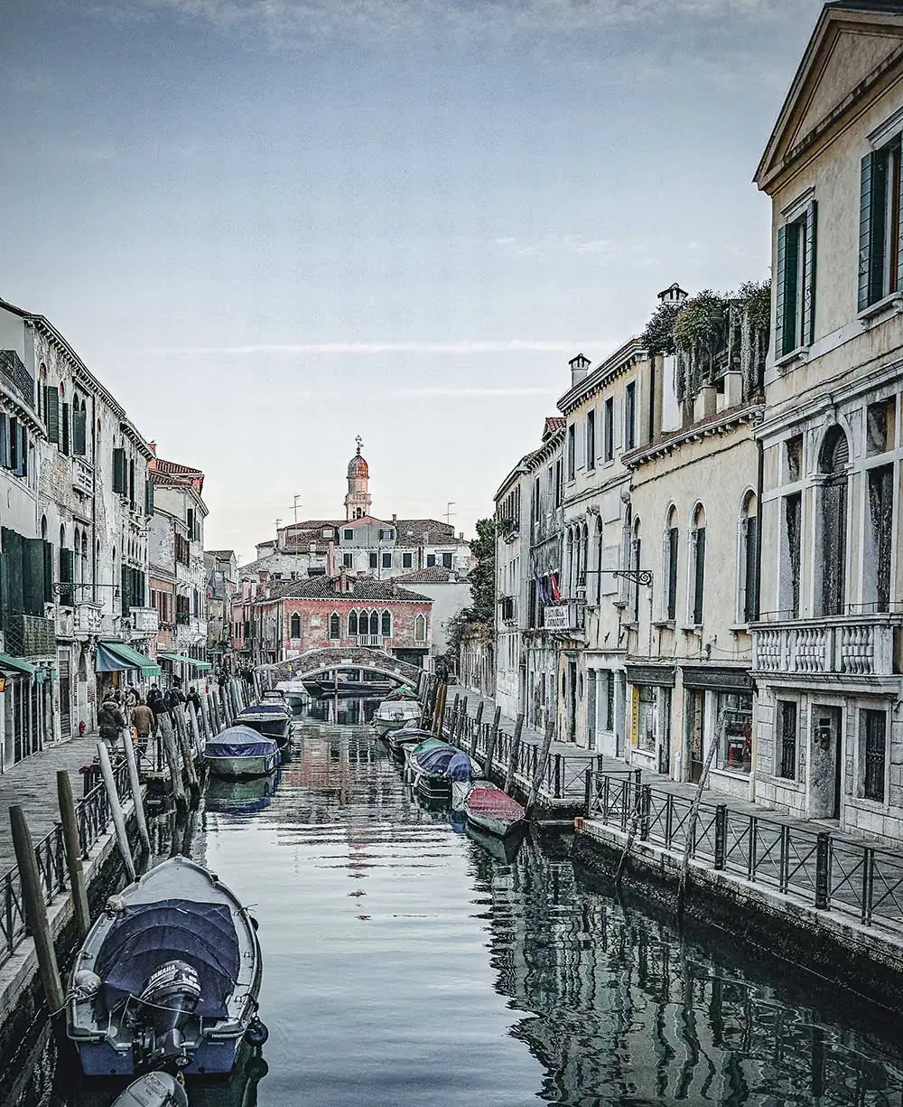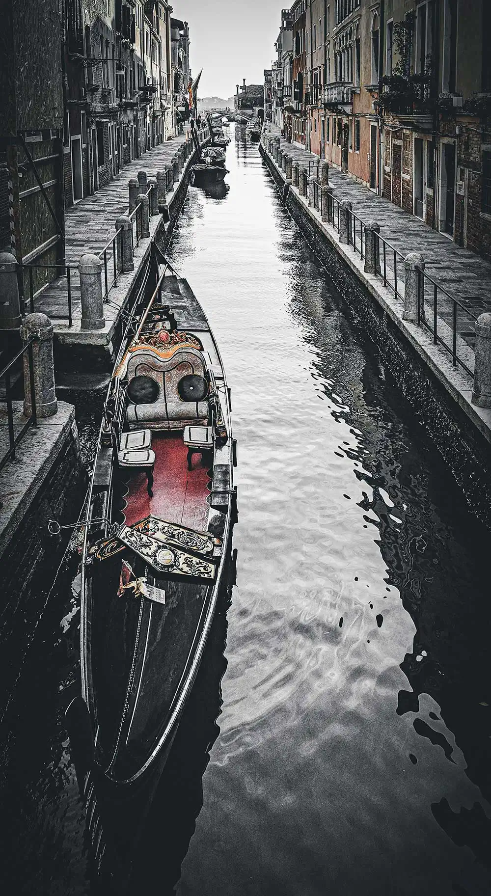 Venice, the ideal city in which to get lost, because getting lost is the most normal thing that can happen and in it it is sublime to wander freely aimlessly hand in hand. Venice is the only city where you can walk freely without worries, not having to take care about traffic: only people and clothes hanging in the Calli. And then Canali, Canali and Canali, sometimes so small that they can embrace from one window to another from one side to the other. And in the channels?