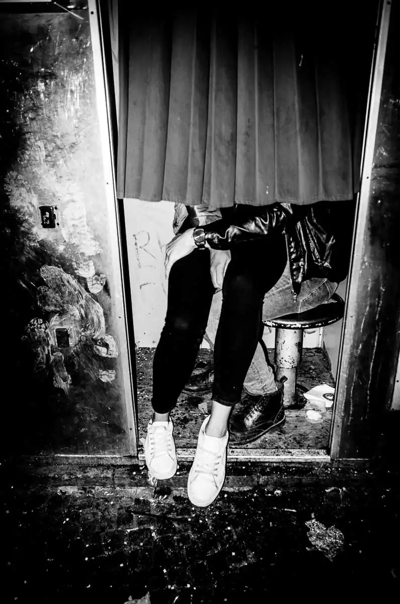 “May you stay Forever Y/oung” is born when life and its confirmation by photography became inseparable. It’s not just a diary of my nocturnal wanderings. I found in the night a moment of communion, a place where alcohol and excess made it possible to free oneself from the tragic feeling of loneliness. I met characters of light in the dark and we were at this moment, when the flash illuminated what we were living, happy to enjoy in the agony of a promise of renewal. In all these nights that I spend triggering and triggering again, there is vertigo and disarray. It is this vertigo and disarray that I seek. And the next day, the images are there to testify that all this has indeed taken place.
