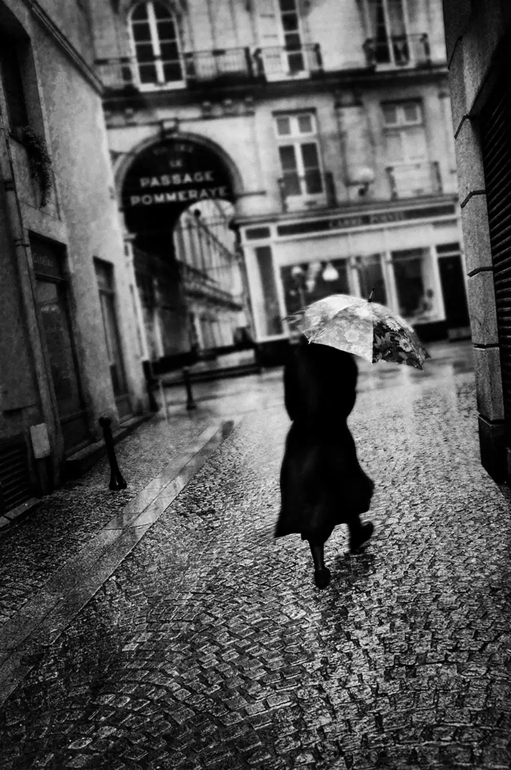That’s how this series started. The rainy days are finally very photogenic, the wet cobblestones gain in nuances, and the passers-by who wander under the rain pay little attention to the photographer with a discreet camera. I started this project with a fuji XE1 and I’m continuing it with its big brother the XE3. This style of camera is perfect for street photography, it doesn’t attract attention, it is possible to hold it with one hand, which is handy when you have to hold an umbrella with your other hand. Another advantage with rainy weather is that no one lingers in the rain, which allows you to get graphics framing in places that seem deserted.