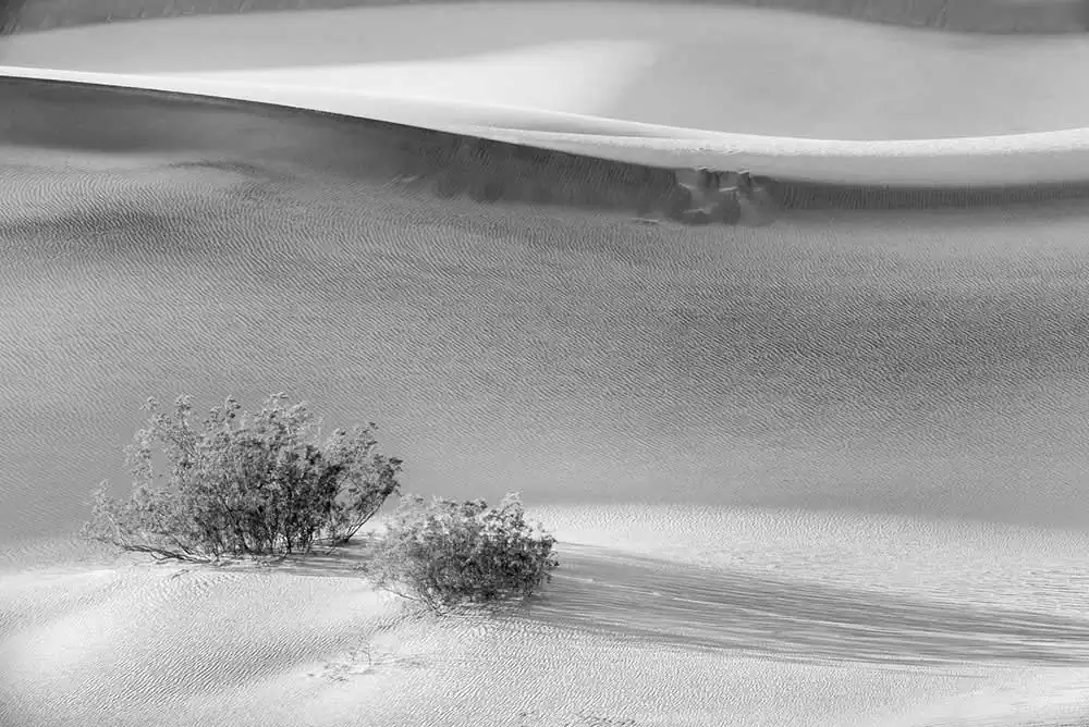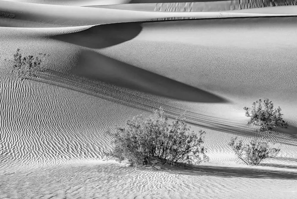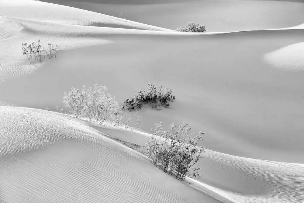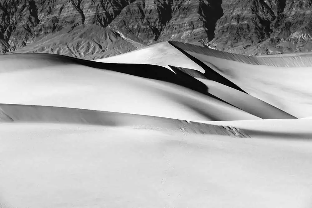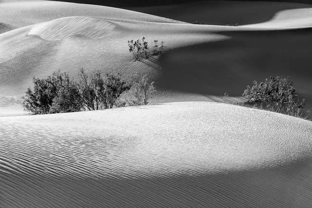It is located near the border between California and Nevada and it stretches over an area of about 3,000 square miles (770 square kilometers). The dunes in Death Valley are like a magnet for the eye. This land of extremes and contrasts with its rugged, yet strange beauty lends itself to graphic, abstract, or minimalist compositions: swirling snakes, waves, human like body shapes, ripples and many more. At certain times of the day the light creates an otherworldly landscape that is magic and mysterious.