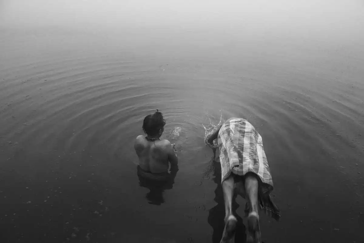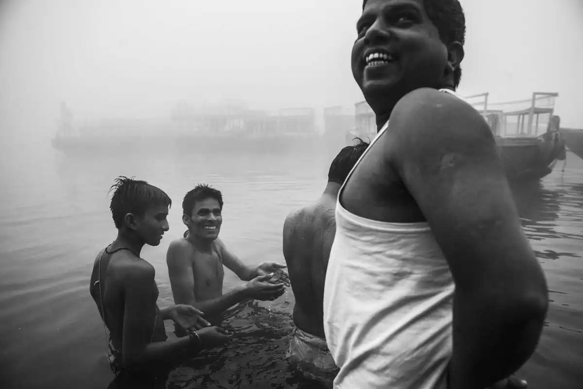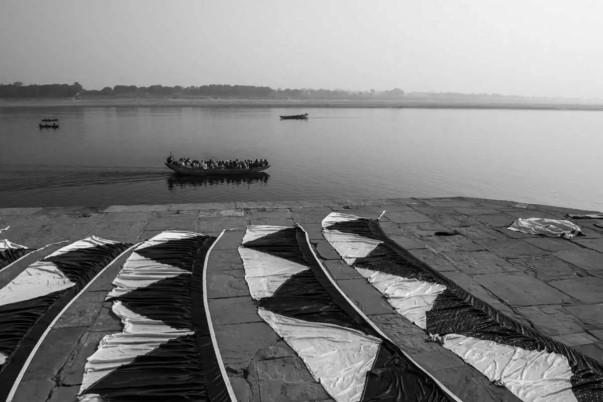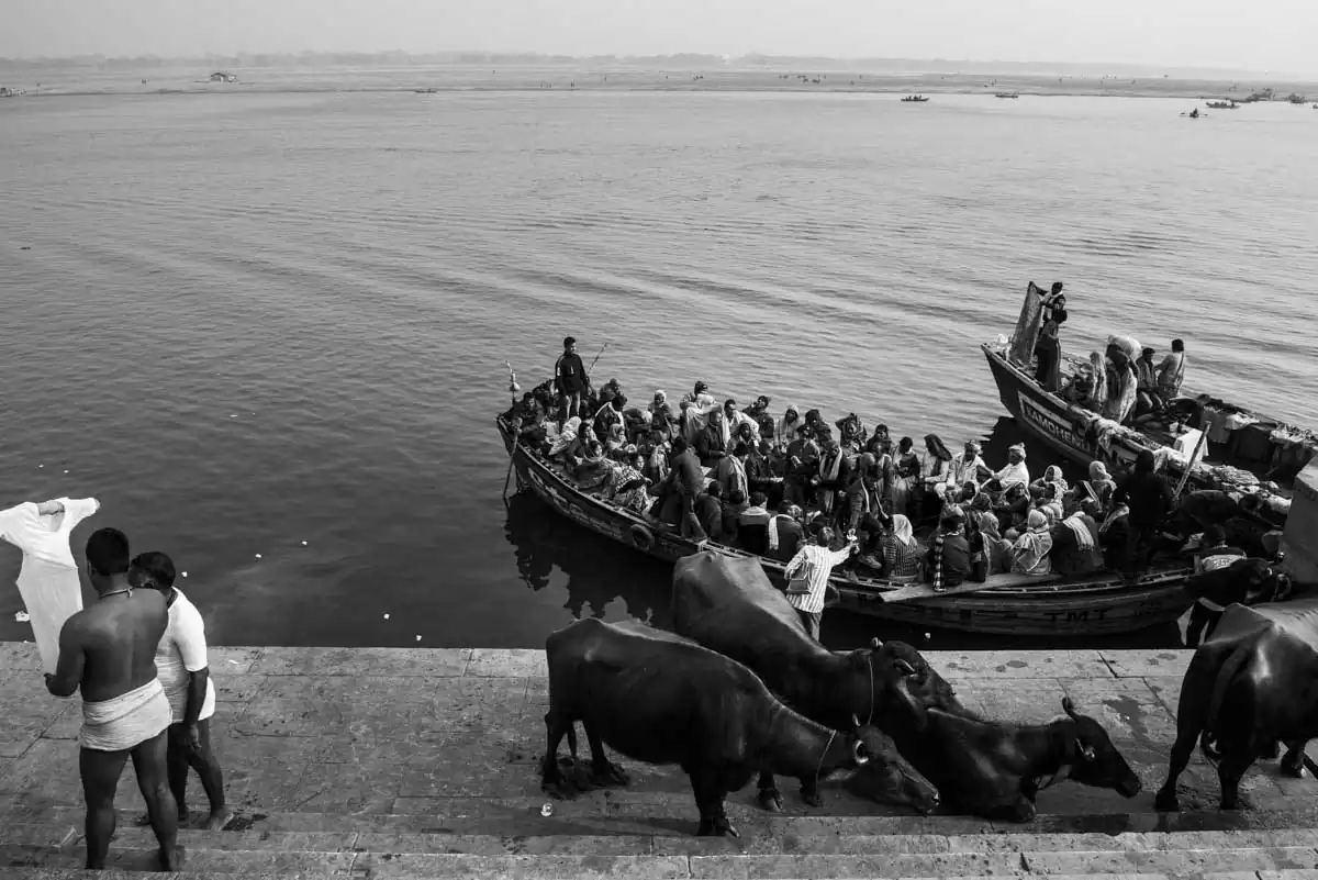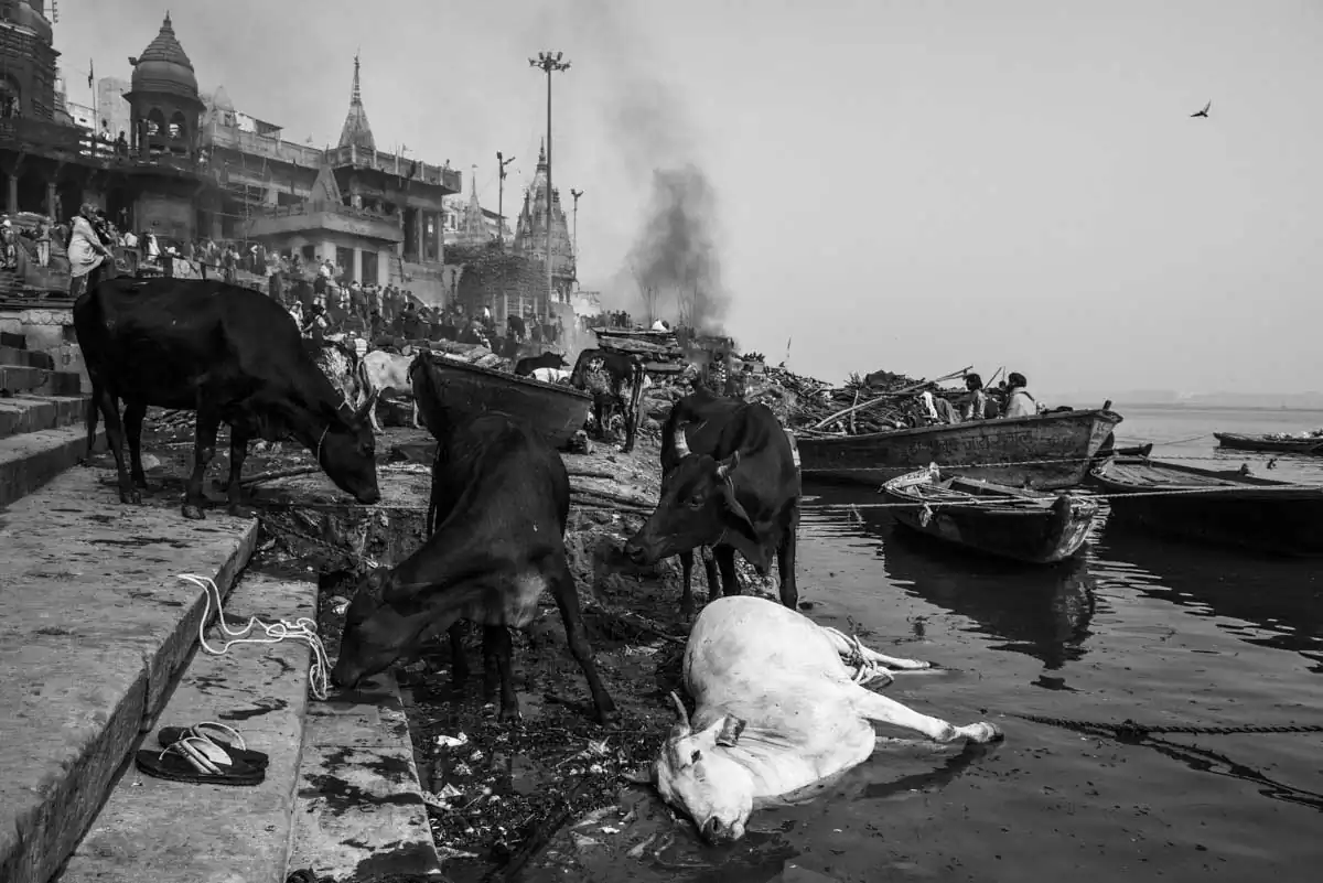 One of the main attractions for the sightseers is a cruise on the cult-related water along Ghats- extending to 5 kilometers of stairs leading to the river. At dawn on the Ghats, the lives of the inhabitants go on, who are practicing their everyday rituals in the fog covered Ganga from the early morning.Some pray, cleansing their body and soul, mediating. Some are doing laundry or filling up water bottles to quench their thirst. Nobody minds the cattle neck-high in the water next to them or the sight of people defecating directly into the mother-river.
