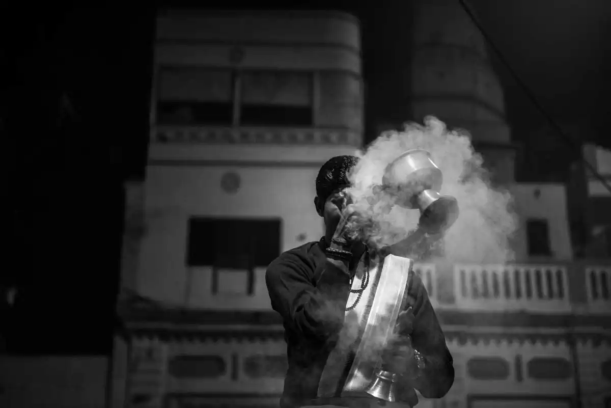 The ceremony is led by a member of a unique Indian society the so-called Dom, apart from him the eldest mourner (usually the eldest son) watches over the ritual, who puts on white robes and shaves his head on bald. First, the body is immersed in the Ganges to have a final taste of the holy water. Next, it is left to dry. At the same time, wooden pyres are being prepared- the size of the stacks and type of wood show the wealth and status of the deceased. After this, the corpse is placed on a heap of wood to be anointed and lubricated with clarified butter (ghee) and sprinkled with pieces of sandalwood. When the deceased is prepared the participants of the funeral to gather around him. While Granthi (the person who has received the honorable function of reading from the holy book) recites Sikh Ardas, the body is set on fire by the oldest mourner. The sound of the cracking skull symbolizes the release of the soul. Sometimes an intervention is needed and to break the skull and other hard parts such as the pelvis, a rod is used. The ceremony of cremation ends after 3-4 hours when the remains are powdered and thrown into the arms of the goddess Ganga forever.