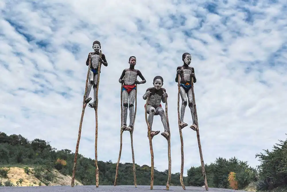 The Surmi tribes use labial plates, the painting of the body but above all they adorn their heads with flowers, fruits and leaves. This feature reveals their love and their union with Nature, with which they have a sacred and deep bond. Mursi people paint their bodies and practice scarification, the women also wear ceramic discs in lower lips and ears. The Hamer are characterized by a particular hairstyle created by weaving the hair with a mixture of water, ocher and butter, to form braids called “gosha”. Dassanech and Nyangatom have countless necklaces of colored beads, which can weight up to 6 Kg. Finally the Karo are considered the master of body painting and compose beautiful designs and motifs on their skin with chalk. All these tribal groups live on crops, livestock and fishing, subsistence activities that depend on the cyclical floods of the Omo river. Unfortunately the seasonal flooding has been interrupted by a maxi hydroelectric project which also caused the expropriation of some communities.