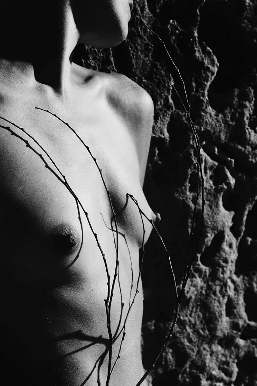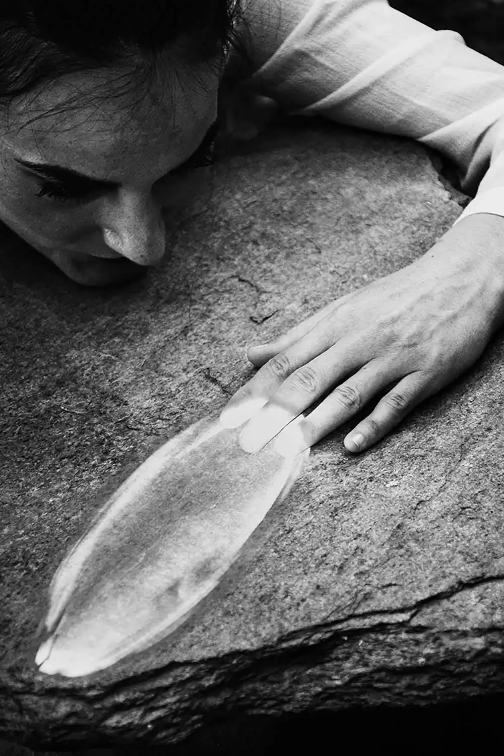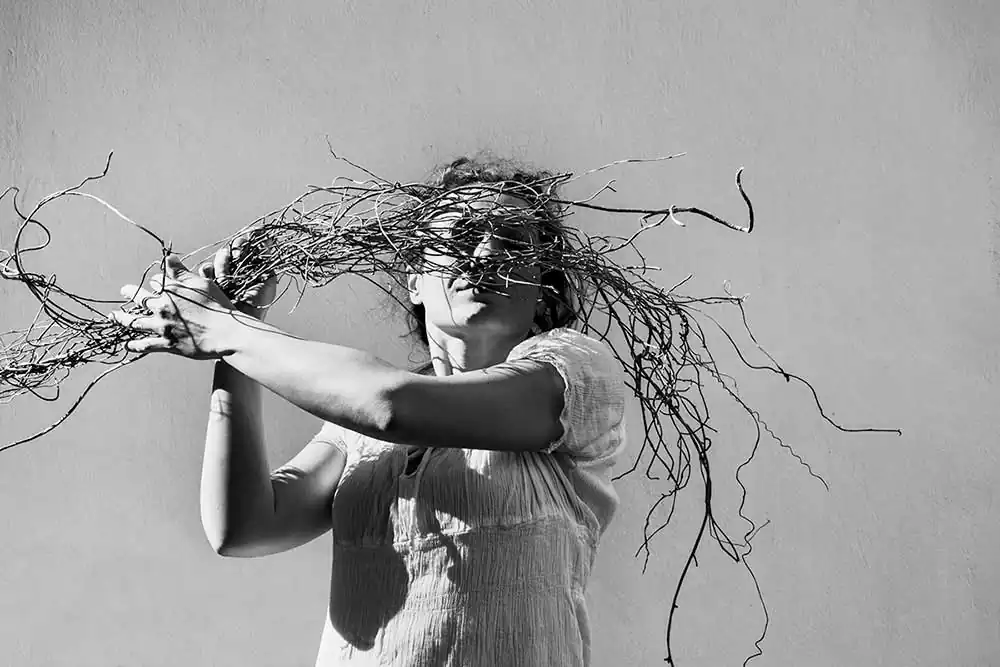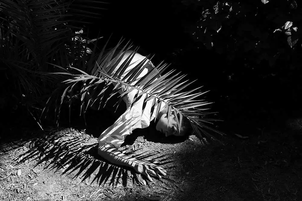 The elliptical description of situations and persons in her photographs define moments whose completion requires our contribution. We need to restore perspective, to compose faces from lines and shapes, so as to, ultimately, discover the associative relationships that articulate the photographer’s personal style. Kourakou directs by minimally drawing on reality – faces, gestures, branches, leaves, thick shadows – and recomposes an enigmatic world. Looking at her photographs, we come to realize that what lies at the core of her work is not so much what is happening when shooting as the shaping of a balance between reality and fantasy, a balance which is always in keeping with the dynamic composition of her frames. [Text: Costis Antoniadis / Emeritus Professor of Photography, UniWA]