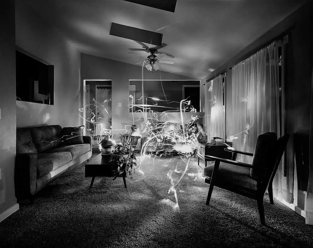 Ready for our third stop? Welcome to Skott Chandler‘s ground! Or should I say science fiction settings? Skott’s universe is full of eerie narratives, weird tales that show a wide range of imagination. He is also capable of matching images from different places into a series and he does it through clever links based on ideas, color, and compositions. His photographs are most of the time a real find! Skott Chandler is a photographic artist, and educator at Black Hills State University in Spearfish, South Dakota. Skott has exhibited throughout the United States, as well as internationally in Bordeaux, France, Hong Kong, and Geneva, Switzerland. About his favorite image, he told me: “It is a challenge to choose one of my own photos as a favorite. I view my images as parts of a whole, with each single image working to support the greater concept. To find a photograph, I had to think about what images would best reflect my photographic ideologies. Images from my series “Dead Time Experiments” seem to best Illustrate my creative intentions. On the surface the images in the series appear as sporadic light paintings; however, they are far from it. I’m interested in human interactions with space, our perception of time, and how photography can accumulate time into a surreal instance. This image is created during a one-hour exposure on 8×10 film at night in a dark room that is significant to the person being photographed. The subject leaves all their electronics outside of the room, and they are left alone in the space with a small handheld flashlight that they can not turn off or set down. The flashlight is critical to the image as it acts as a mark-making device and it is the way their time in the space is visualized on the film. The handheld flashlight makes the act of looking visual, as the subject has to point the light to where they want to see. My favorite thing about all the images in the Dead Time Experiments is the amount of visual information provided to the viewer. The more time spent viewing the image the more small details and moments from the subject’s time and actions during the exposure are discovered”. Skott shows he is a conscious creator. Don’t miss his series, check them out!