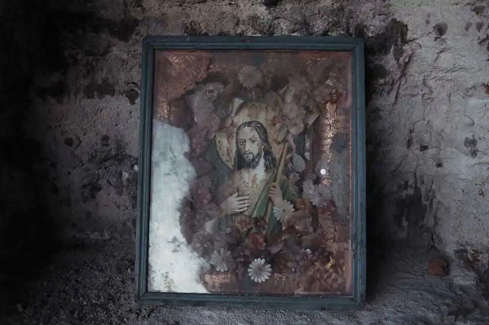 I am going down and get to the quite large square, one side it is fenced, another side – a crag, in which five centuries ago Orthodox Church was carved. The man with dark hair and very deep gaze to inside of my soul comes to meet me. He greets me. He is trying to realize who I am. Through some moments he demonstrates his dwelling: two small rooms, in which past and present coexists. The interior items differ from old icons, drawing two hundred years ago, to the modern radio and lamp. Armory and supporting guard point was earlier on that place, so Sergey – the hero of my story, like a guard, defending that place from oblivion of his presence.