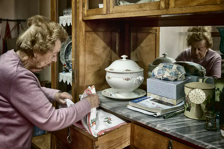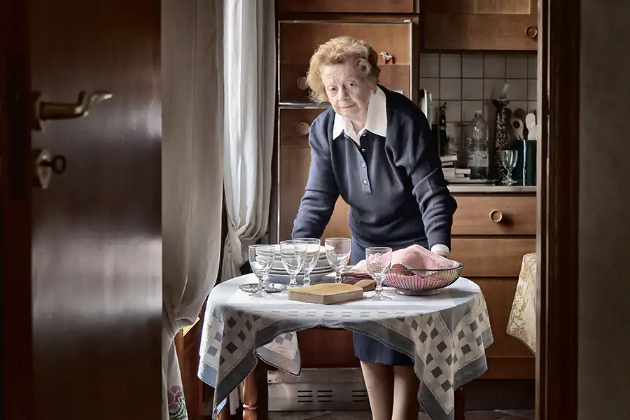 “Aunt Sara lives alone. Never been married, she has lived once with her parents, then, since 20 years ago, with her younger sister. She has never needed to work to live. At the age of forty she has decided to teach because she was little bored; an activity like crochet, reading, cooking cakes, charity work. Now, that she is ninety, she is always occupied all day long. To spend a journey with her is like to live in a timeless tale that it repeats all days: each hour has an habitude, a light, an object, a movement, a sound.“