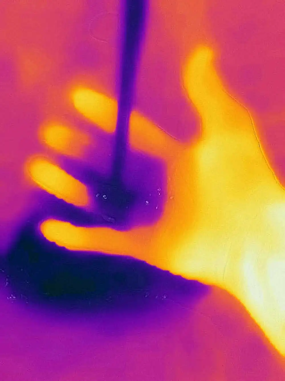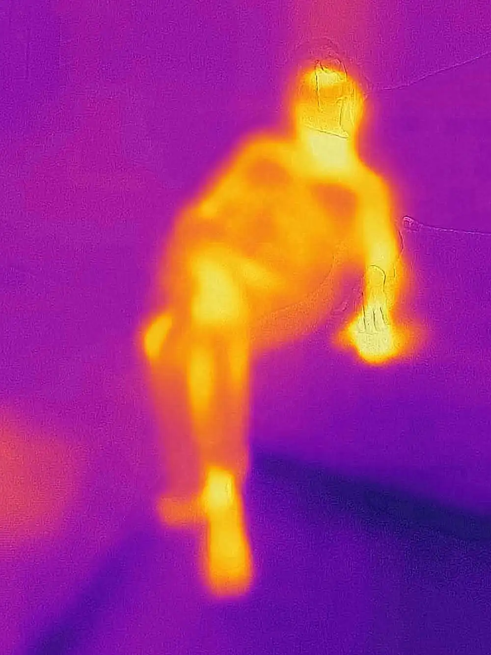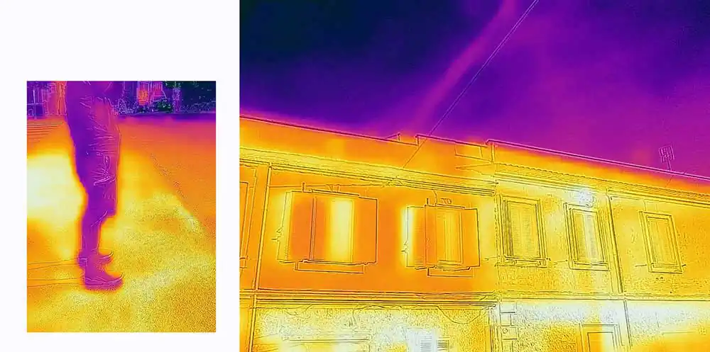 At 37.5 ° you enter the anti-Covid-19 control field (you cannot enter the workplace and in all those places where the temperature control at the entrance is in force). This is our life in these strange days and looking at the world with new eyes seems to be an obligatory path, to be taken with decision, not so much as a defense from the invisible (for that there are norms and common sense), but for understand our time. Staging a new kind of view is one of the possible paths: no longer (or not only) a world of light but a world of body temperatures, phosphorescent yellows, deep reds, intense violet. Giving a new contour to things by replacing light with temperature. Giving color to fear from a new point of view, to be able to look at it. The spectrum of human sight aligns with other frequencies, those of the virus. Suddenly we can see our souls. Notes: – The photographs were taken during the quarantine, and subsequent “phase 2” of the Covid-19 pandemic in 2020 in Rome, with a thermal camera, which combines the thermal spectrum with the visible image with a dual camera. – No digital post production has been performed. – There are a total of 20 images, 3 of which are exhibited as a “diptych” (see file No. 07-13-20).