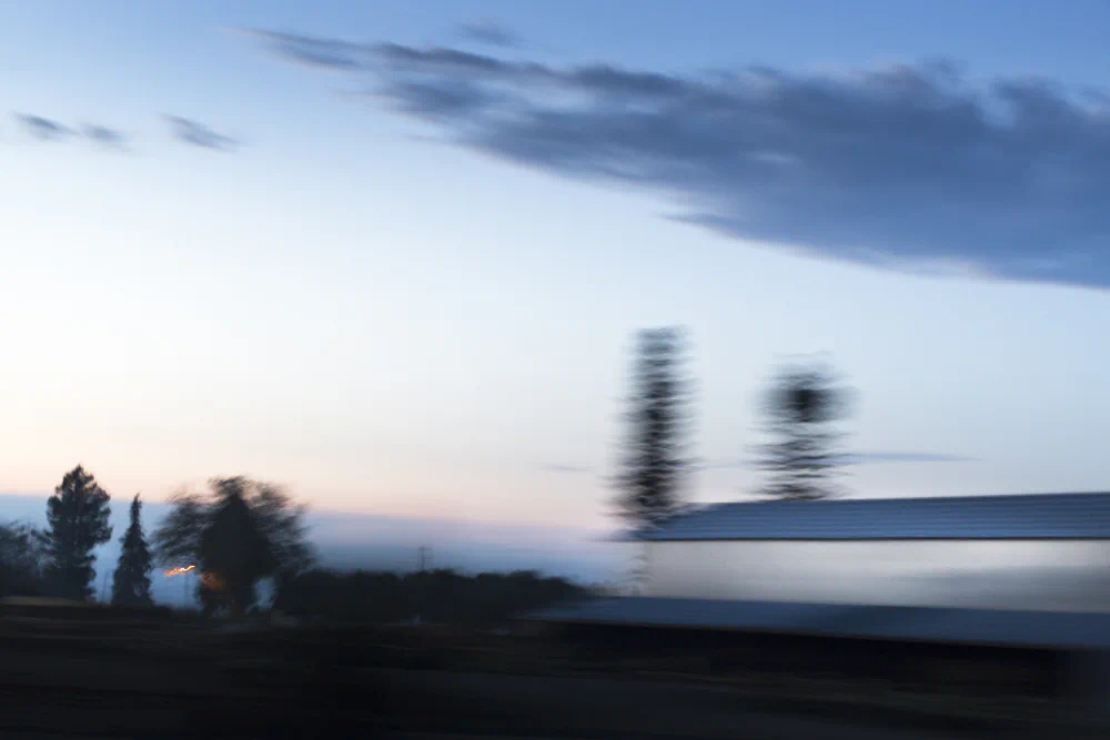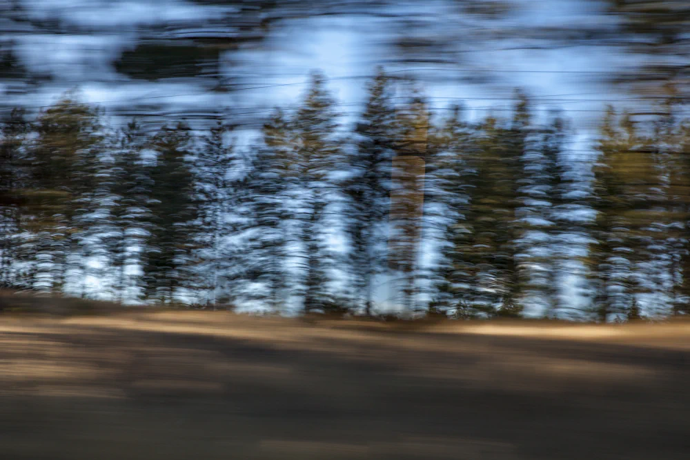 While rooted in a specific geography, 65 MPH is not intended as a singular autobiographical narrative. The ambiguity created through motion and abstraction leaves space for viewers to bring their own experiences of travel, memory, and transition into the work. The photographs function as thresholds—neither fully descriptive nor entirely abstract—inviting personal associations with speed, place, and the quiet introspection that occurs while looking out a car window, moving through time as much as through landscape.
