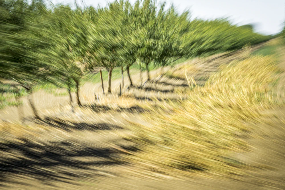 Using Intentional Camera Movement (ICM)—a photographic approach that combines a slow shutter speed with deliberate camera motion—65 MPH is a body of work created while traveling as a passenger through California’s San Joaquin Valley.