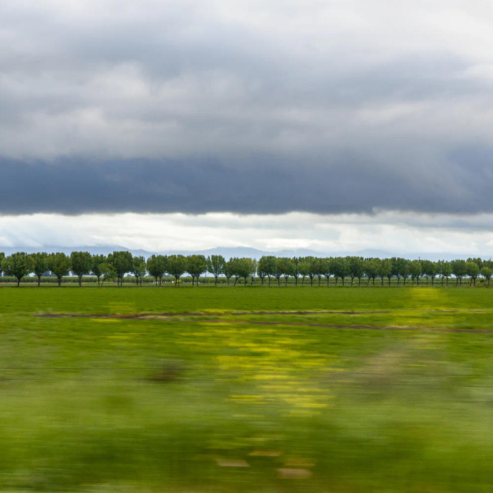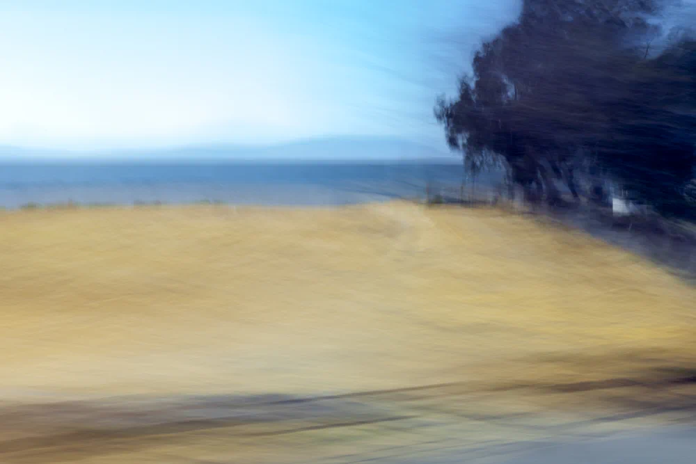 Rather than documenting the landscape with precision, the photographs respond intuitively to speed, rhythm, and atmosphere, mirroring the way memory itself operates: fluid, partial, and emotionally charged.