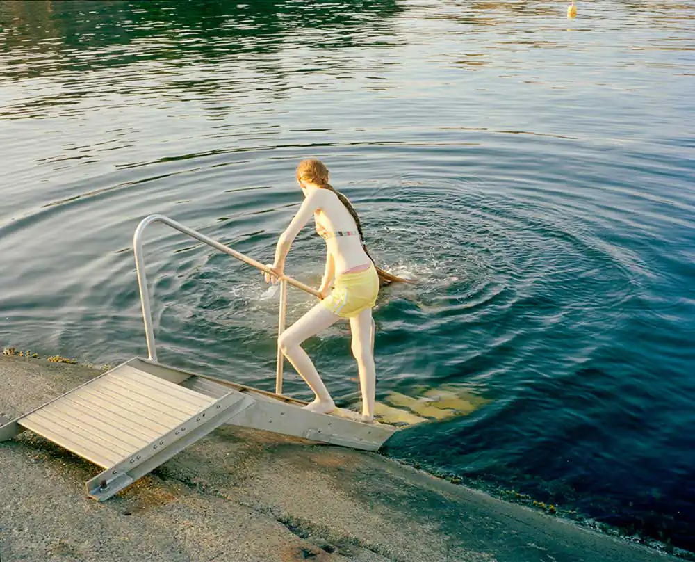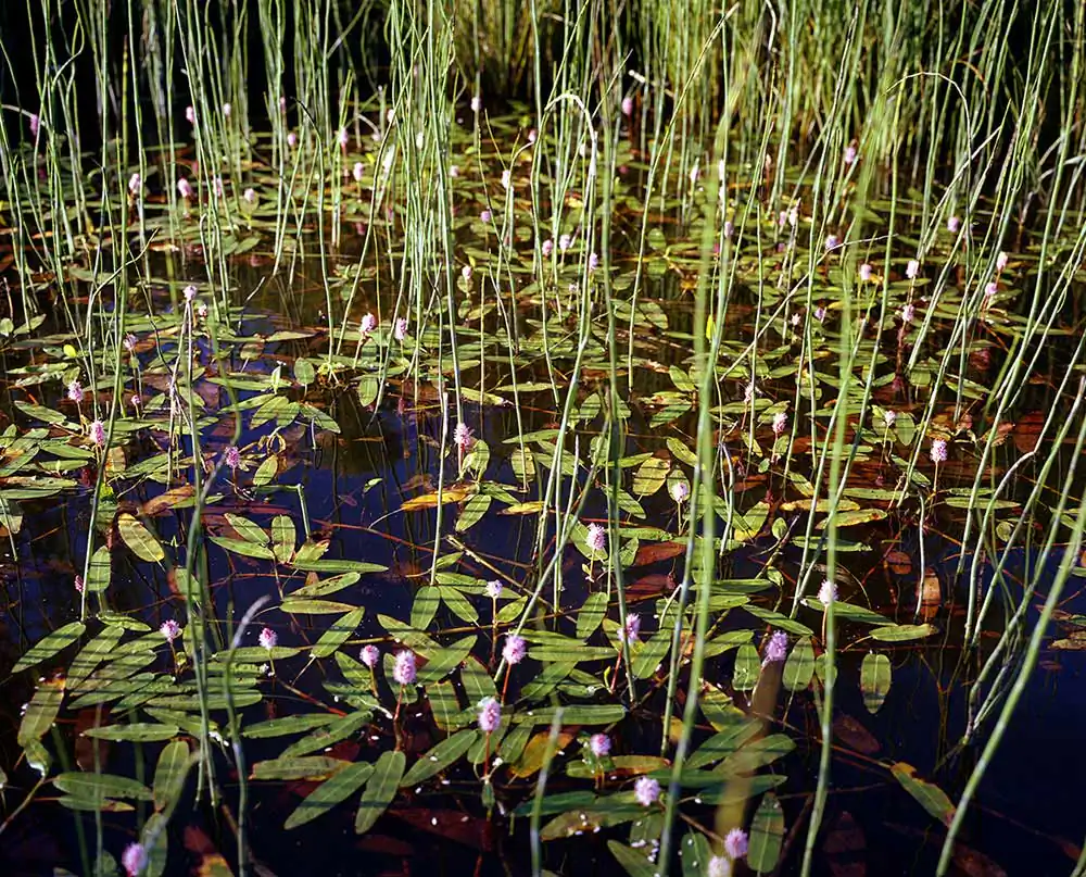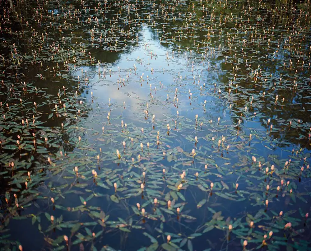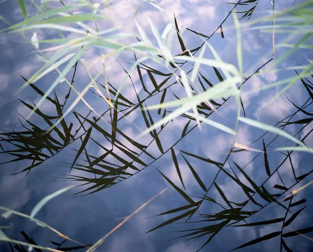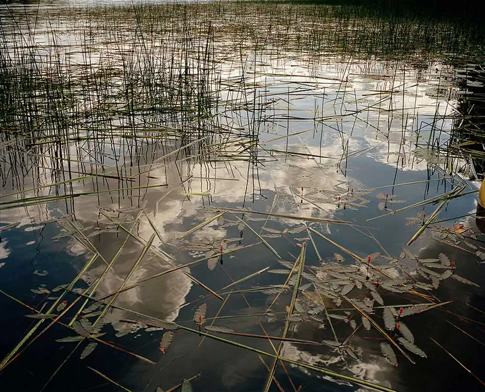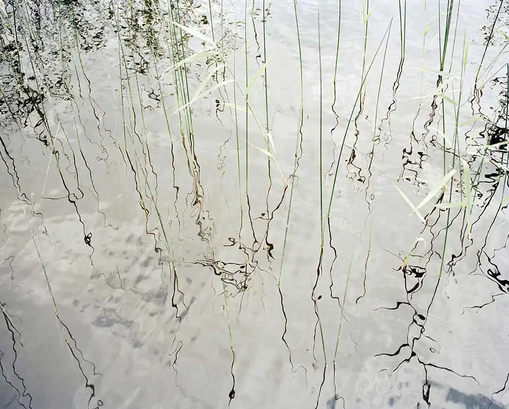 Marius Schultz (born 1962) attended Brooks Institute of Photography in Santa Barbara, California. Water has always fascinated him. Throughout his adult life it is always water, the Norwegian water that he returns to when seeking the close and calm. His photographs are characterized by the affiliation and the need to be near water, which also is a recurring theme in his work. In early exhibitions Schultz explored the human body in landscapes where water is always present. By giving the exhibitions titles like “Waves” he reveals his true reference. These photographs become metaphors depicting life and the waves in it. Schultz portrays the reality that surrounds us. He is engaged in the wholeness of nature; how things are linked together. His photographs of the water is surface appear as sequences of what we see around us. The reeds and the water represent the organic, the presence of nature which itself has pictorial qualities. Patterns are formed, and the reeds can be compared to the strokes of a brush across a canvas. The abstraction creates a separation between what one really sees and what is merely a playful and poetic composition made by nature; the reflection of the sky, the shadows of the reeds and the rippled surface complement each other and create esthetic expressions. Schultzs photographs capture the spontaneous moment on the waters surface and are based on natures own exhibition and own premises. The ongoing playfulness is frozen even though nature itself always changes and time passes by. [Official Website]