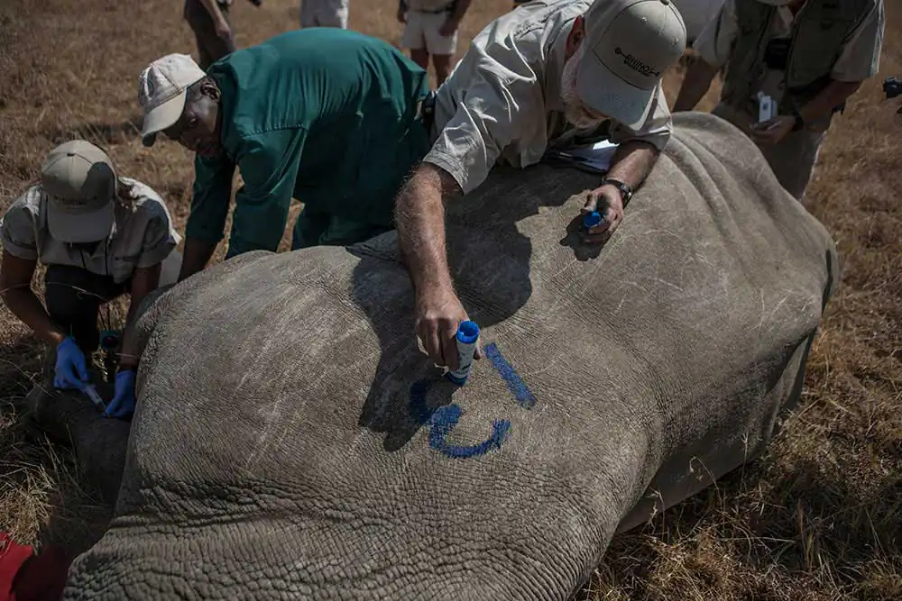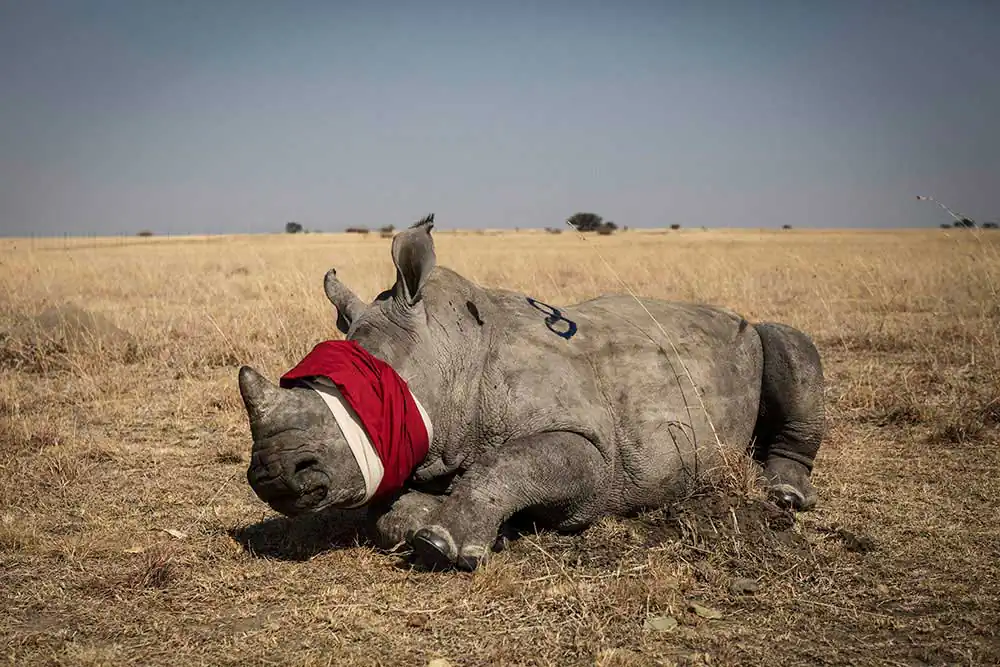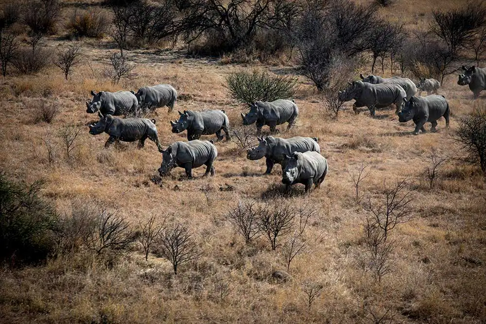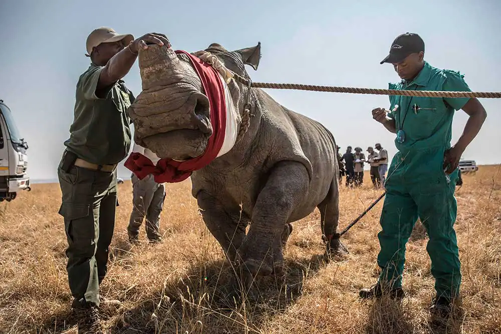 The rhino population in Africa has fallen by more than 95 percent since 1900, to just 21,000 southern white rhinos and 5,000 black rhinos; 80 percent of those animals are in South Africa’s game reserves and on ranches.