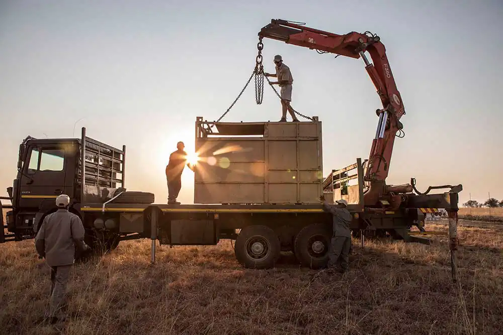 I rode along on the first convoy operated by Rhinos Without Borders from Free State, South Africa to the Okavango Delta – a 1500km journey with 15 rhinos – this was the largest transportation of rhinos ever attempted. The rhinos were owned by a Free State farmer whose farm had come under attack by poachers on a number of occasions. He decided that it was safer for the his family and the rhinos to have them relocated by Rhinos Without Borders to Botswana.