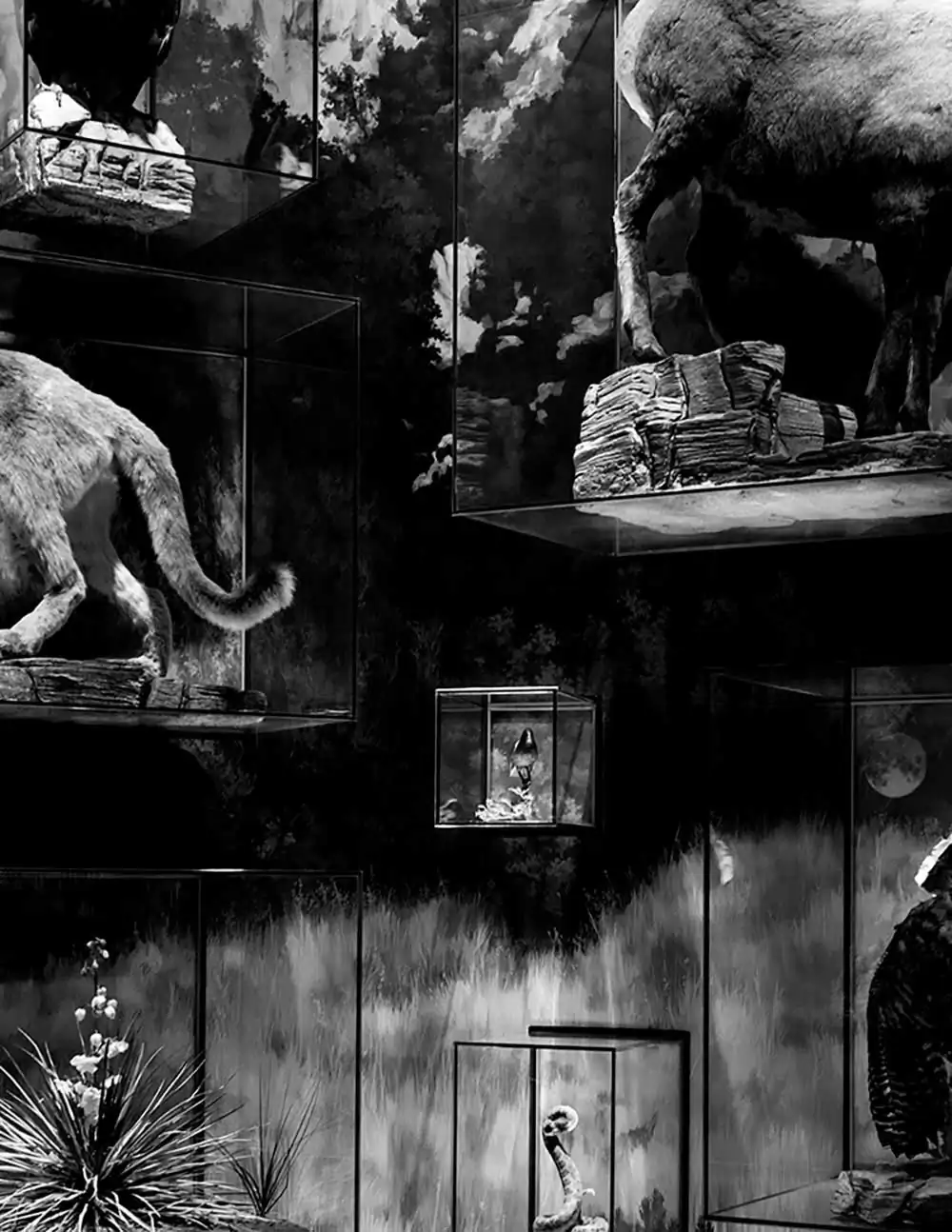 With this in mind, I want to understand the ways that natural history museums and the American landscape affect one another. My photographs contrast and connect the interior spaces of museums with exterior spaces, like National Parks and scenic viewpoints. Cycling between these spaces blurs the lines between the two. Because of the similar ways nature is distorted and simplified for the viewer, what is artificial or natural, inside or outside, becomes indistinguishable. By relating the microcosm of natural history museums to the macrocosm of the larger American landscape, the cultural biases and at times absurd expectations of what is “natural” come to the forefront of the project.