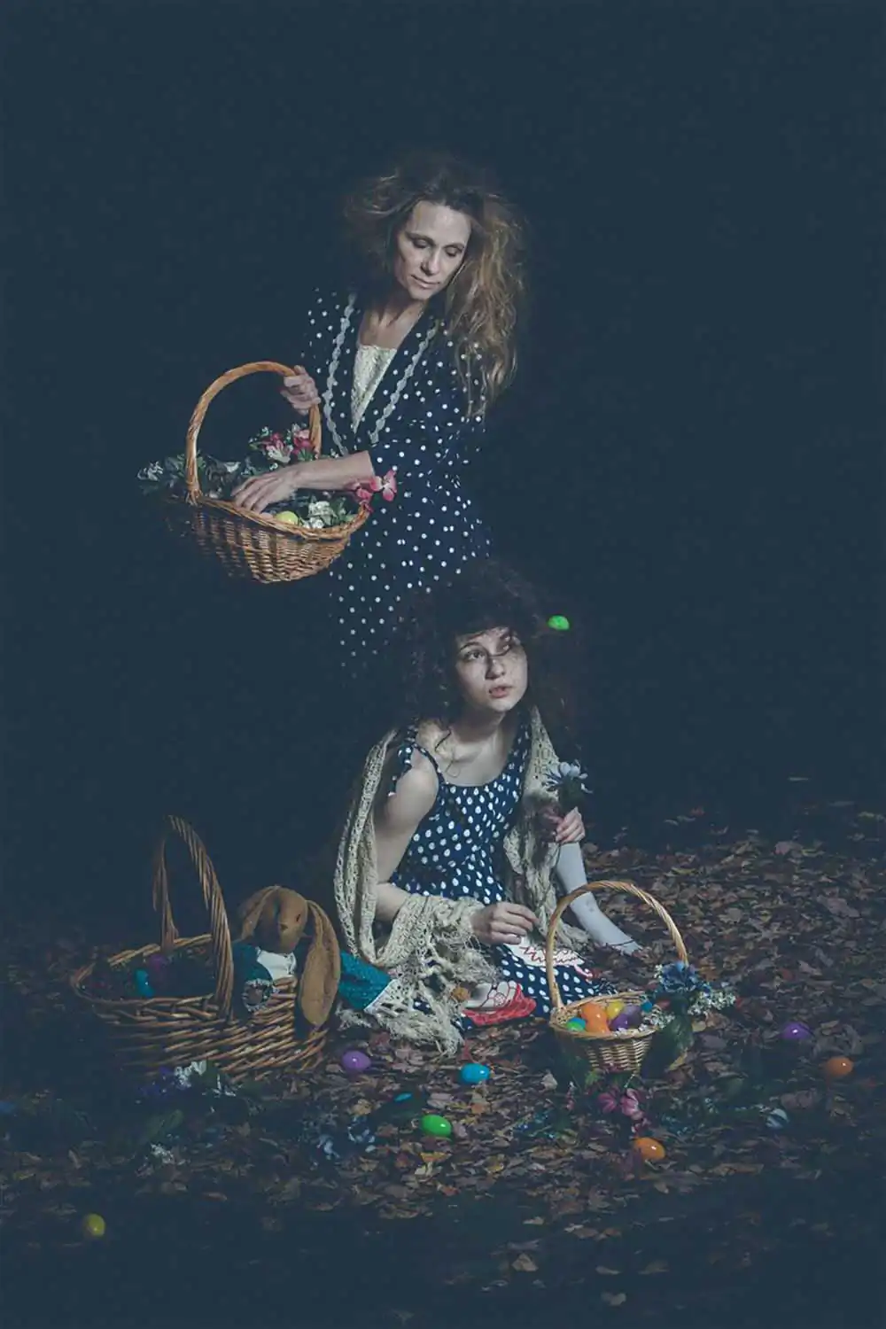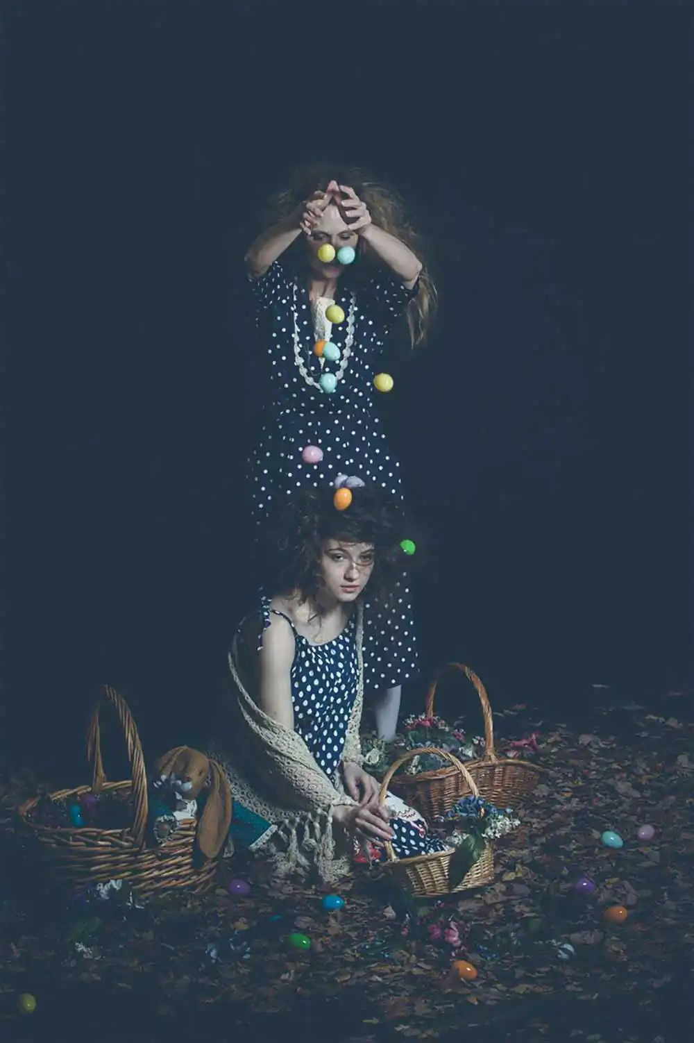 “Having fun! Come on!” Jo replied. Jo rolls around among the dead leaves hiding transfixing colored eggs and flowers. “Look at the stuffed bunnies!”Jo said, handing me a cute bunny that smelled like a gorgeous flower garden. A sweet smell creeped into the air setting my hair on end. Warming lights burst around us again. I did everything I could do to keep my heart from climbing out of my throat when the light died revealing him. His ears only added to his height. Where was Jo? I whipped around in panic. She was here. We were always together. His white fur glisend as he stepped into the light. Choking on my own heart, I drop to my knees swallowing it down hard. Breathing deeply, I let the anxiety and fear wash out of me. Awaiting the unknown I feel a compelling unification with the music of nature. A calming voice whispers “Joann are you ready?’ I open my eyes to find no one. I find my feet have freedom. A stuffed bunny lay at my knees. She wore a cute dress and smelled of flowers.