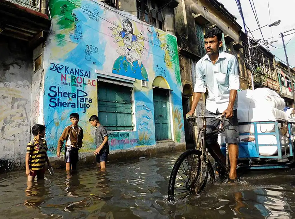Calcutta during 16th Century was a mere cluster of three villages. Gradually the British started to develop the villages into a planned urban settlement to stronghold their trading outpost. Later development of tram tracks through Circular Road (AJC Bose Road) and Cornwalis Street (Bidhan Sarani) resulted in an upward elevation towards both the pathway from Amherst Street resulting to the street getting waterlogged after a slight torrential downpour along with vast areas of Central Avenue, Rabindra Sarani, Girish Park. Towards South of Kolkata- Behala , Golf Green , Tollygunge also gets flooded during this season.