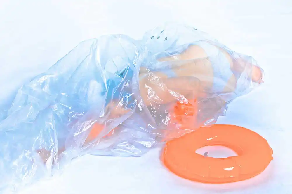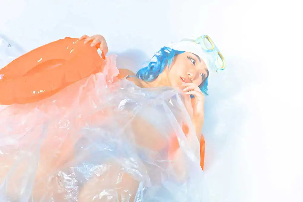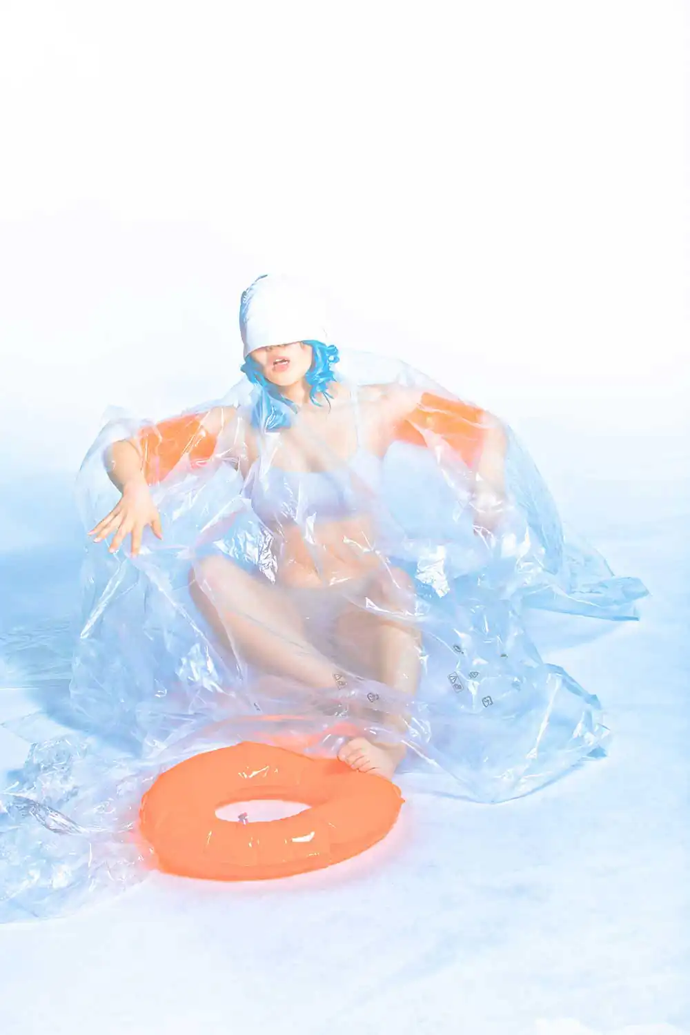 With the pandemic and the lockdowns in 2020 I started working on the ‘A Virtual Summer” concept. A story about a girl being stuck at home pretending to be on the beach. Minimalism style, plastic foil mimicking waves, a Zeitgeist shoot.