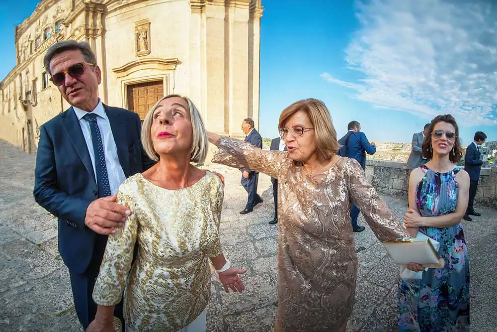 He moved easily among photographers, priest (with price list in hand), singer in church who accompanied the organ, throwing rice, “apecar” with tour in the Sassi to find the best locations for photos, suffocating heat and scented waters for fight it, relatives, friends, restaurant in a farmhouse with swimming pool, dancing, innovative and traditional food, oysters and instantly made mozzarella. A relaxed but refined environment was created, cheerful but without too many tacky excesses.