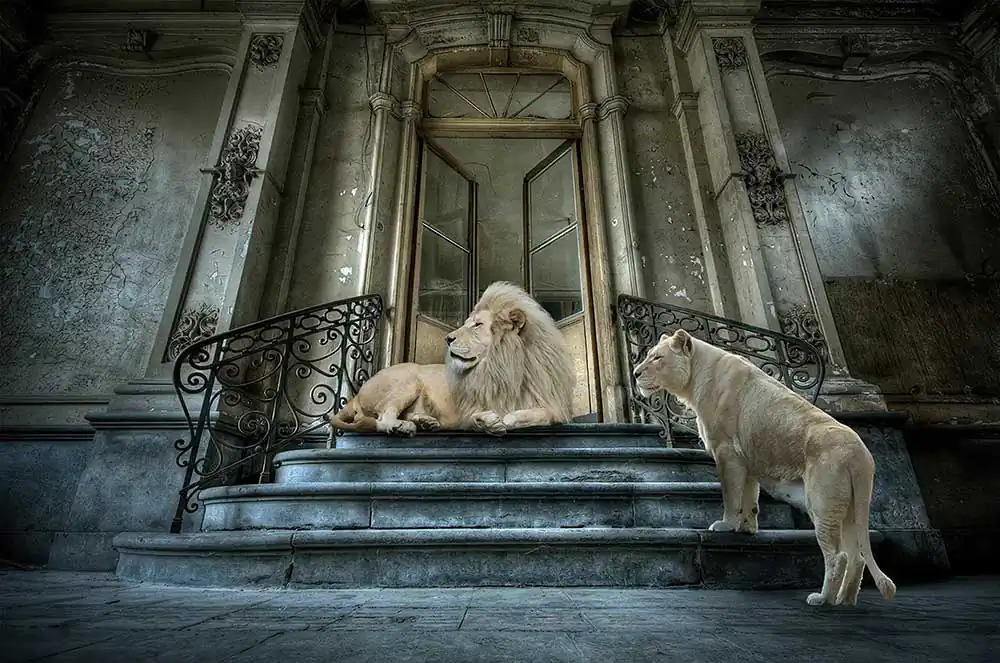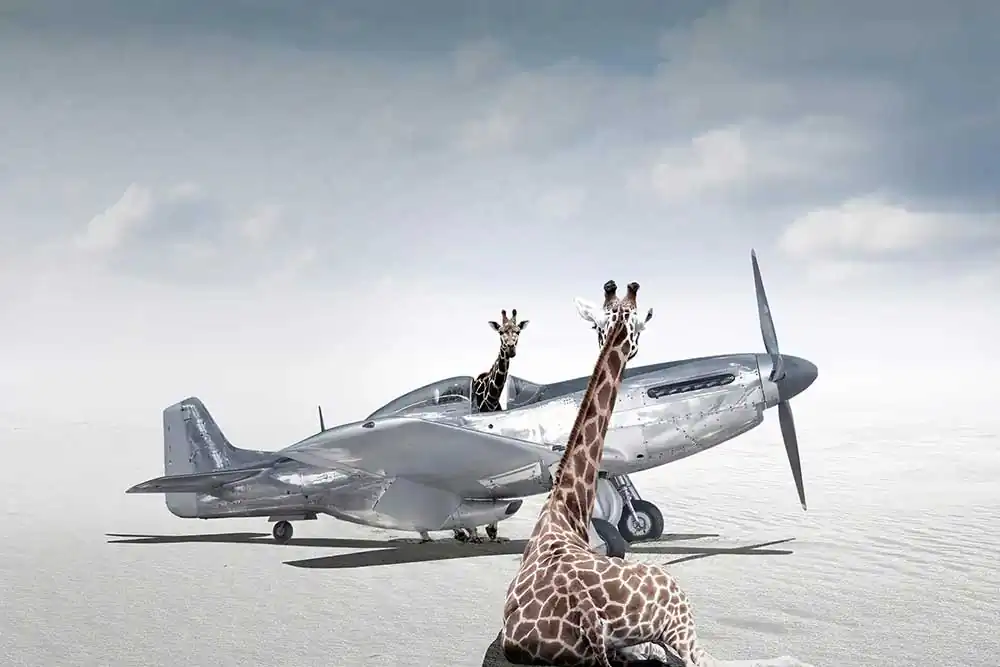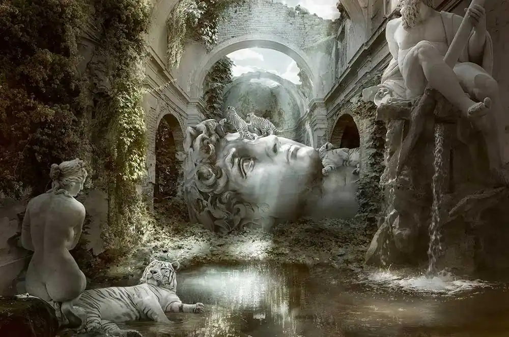 Cheraine then moved from pencils to digital, and with the help of many tutorials found on YouTube and especially thanks to the teachings of James Gurney from the book “Imaginative Realism: How to Paint What Doesn’t Exist”, she acquired skills that were previously hidden; first combining photography and drawing and then specializing more and more in what we now call “composite”, reaching over time a level of almost absolute perfection. Think that normally, Cheraine’s creations contain about 500 different layers and in her most recent work, they reach over 1000. Furthermore, the very high definition with which she works, allows her to print up to 10×13 meters without losing sharpness. This certifies the meticulous precision of her works that are not only visually attractive and conceptually founded, but that reveal extremely high technical qualities.