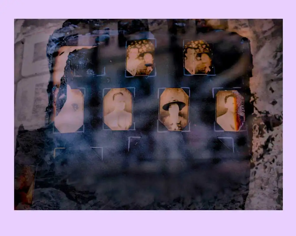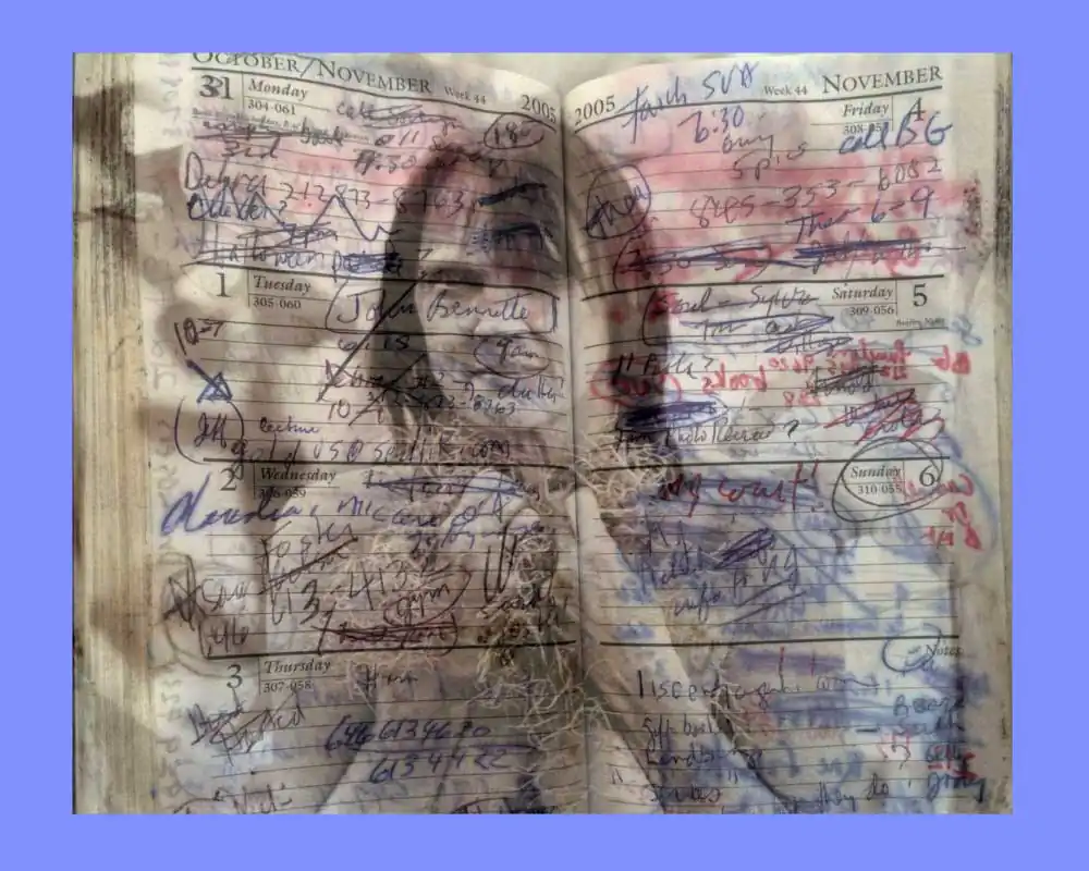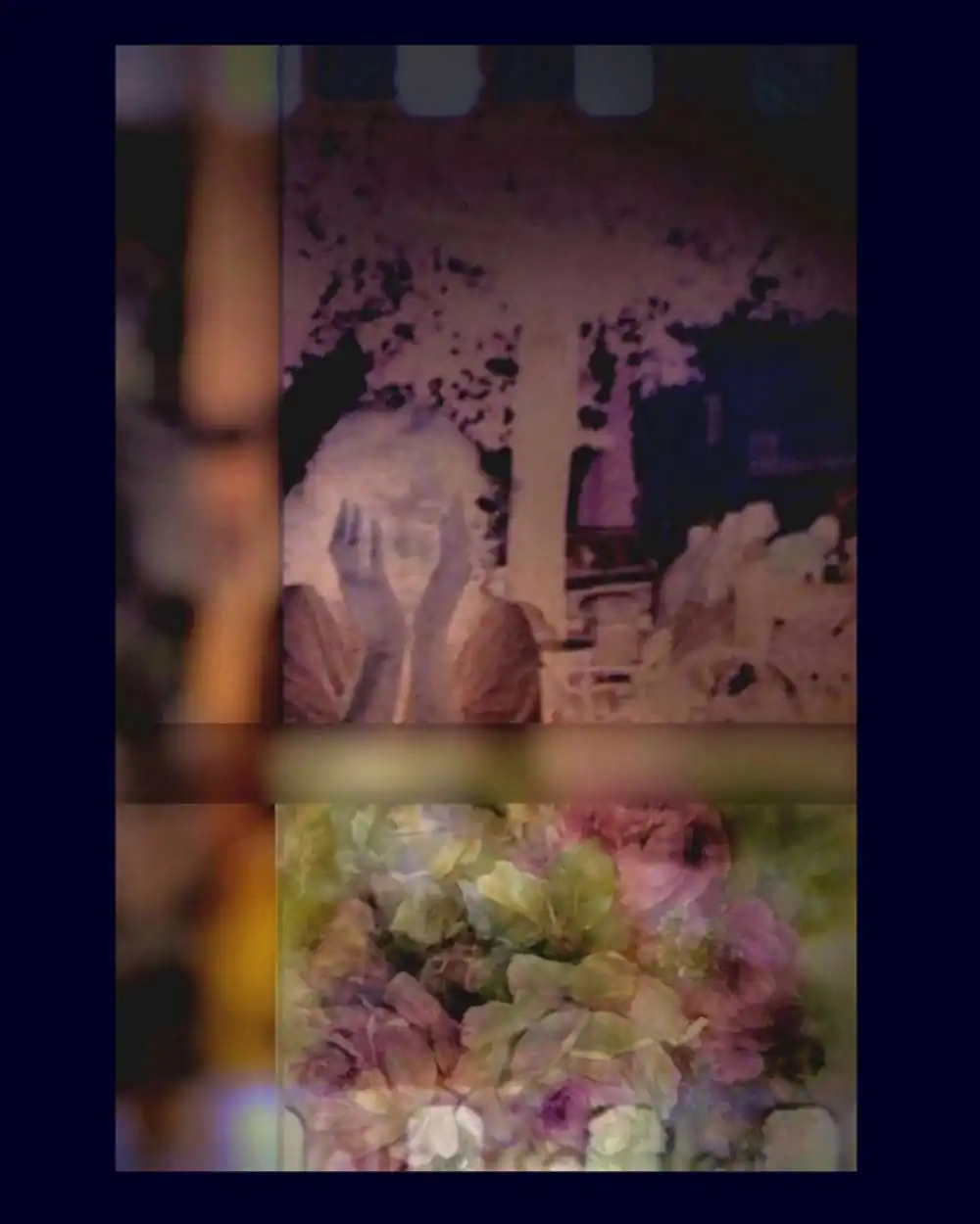 I was still in shock as I had just finished preparing my slides, negatives, diaries to be mailed to my Syracuse University Bird Library archive. It was devastating to know it had mostly burned. I quickly became a researcher. Instead looking for ancient finds, I was frantically digging my own life story out of smoldering ashes – I had to. The storage space became my art studio, as I learned archival techniques to dry and blot with paper towels everything in hopes to save the fragile paper and celluloid relics. The fire and powerful water hoses rearranged my things into clumped pieces that no longer had their linear direction. Memory was layered in abstract and uncanny ways. Since my friend and colleague Christine regularly composed images in her digital processing, we discussed how she might guide me to bring some of the history together in a way that pleased me, and created visuals in an elegiac way, rather than the chaos. Over our time together, Christine shared her spirituality with me, being also a Yoga teacher, and ways of meditation and relaxation.  Christine was the first friend I called after the fire knowing she had empathy, and could identify with my trauma and smooth out the first strike of shock.