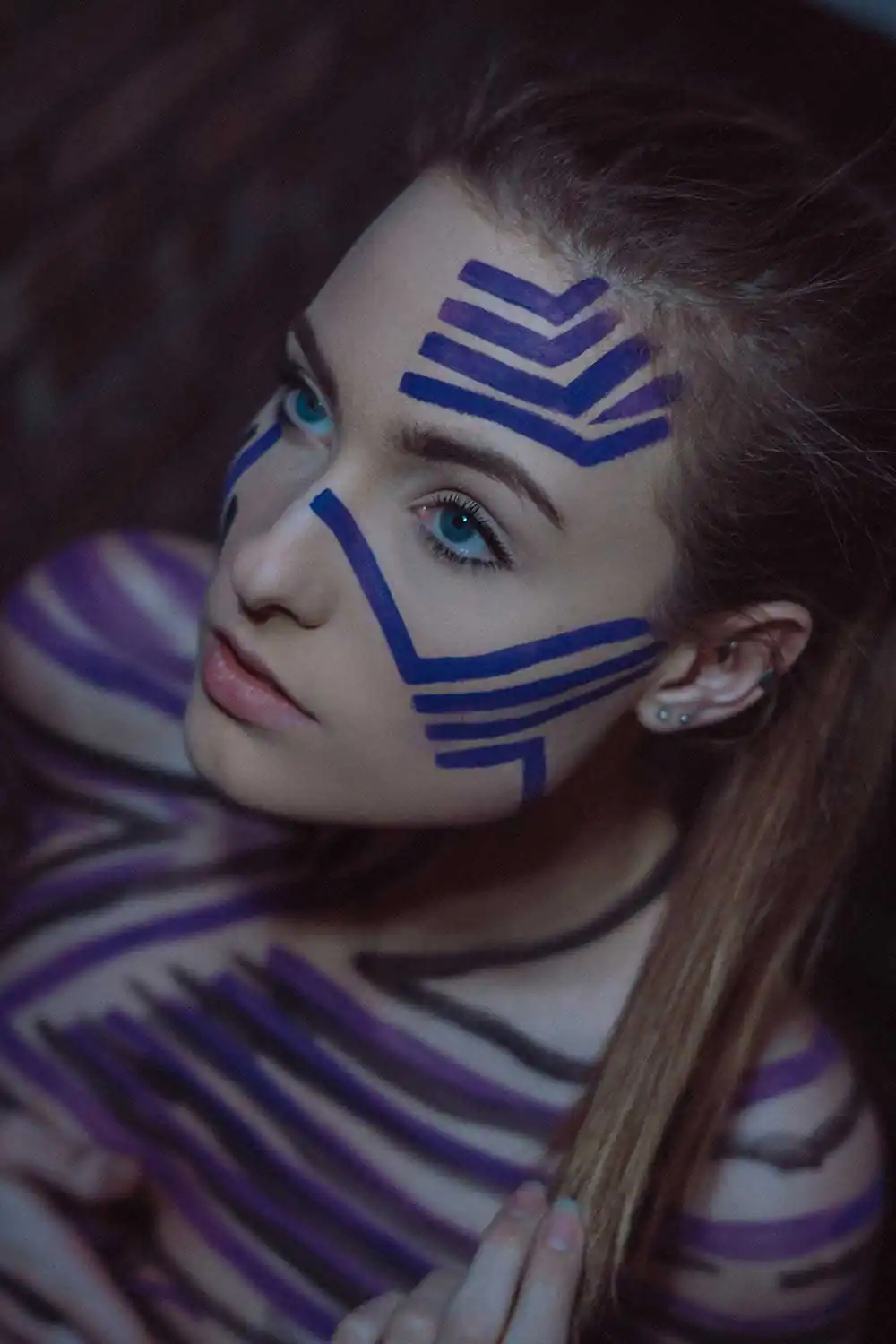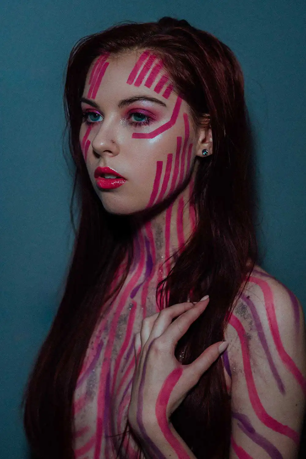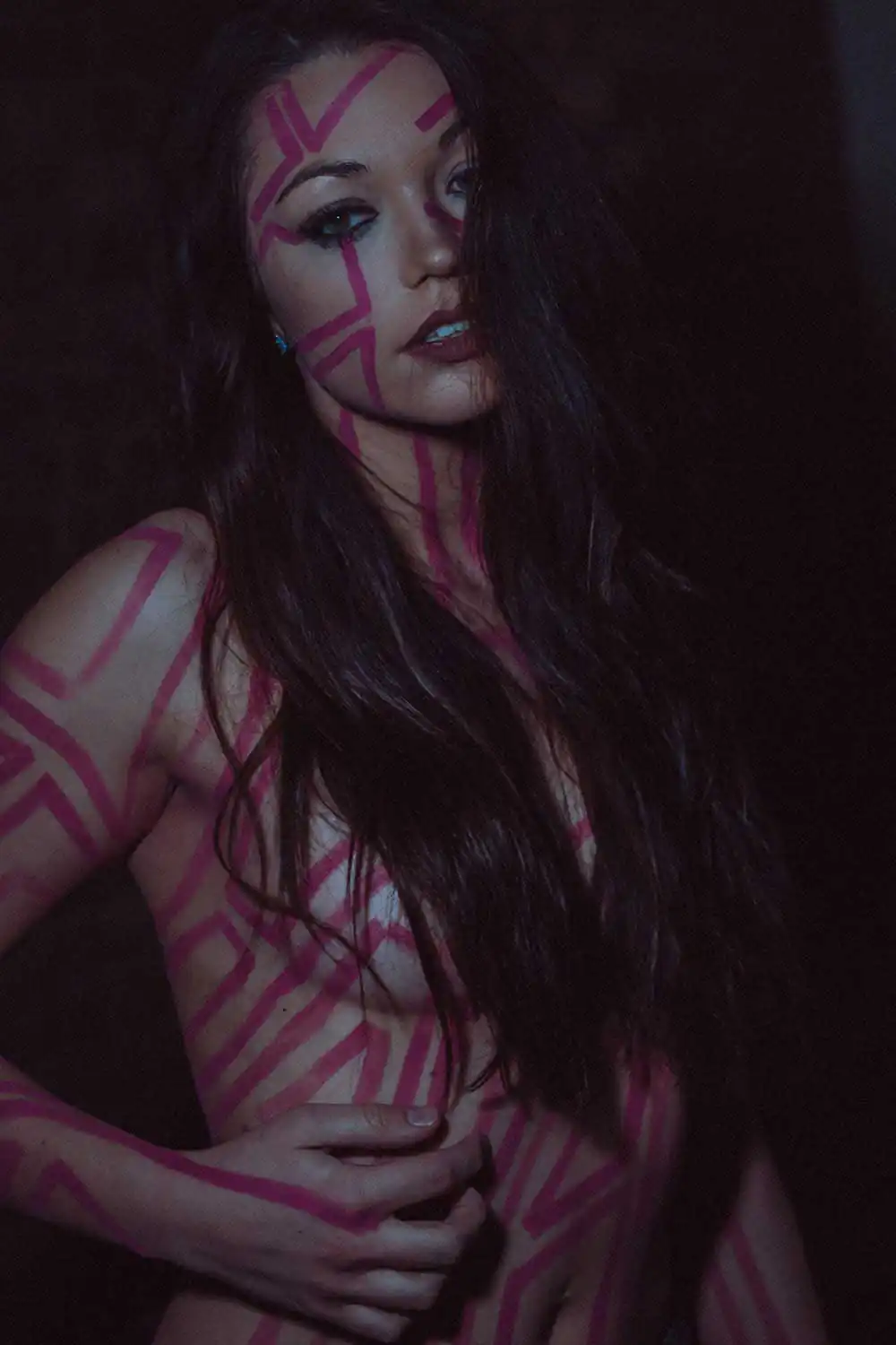 Thus, Adamm’s goal with this series is to accomplish the difficult and complex task of keeping the model, the paint design and the photography in a symbiotic relationship so that all three aspects of the photo are hopefully perceived as equally impressive by the viewer. Adamm creates and hand paints every paint design in this series. Enjoy.
