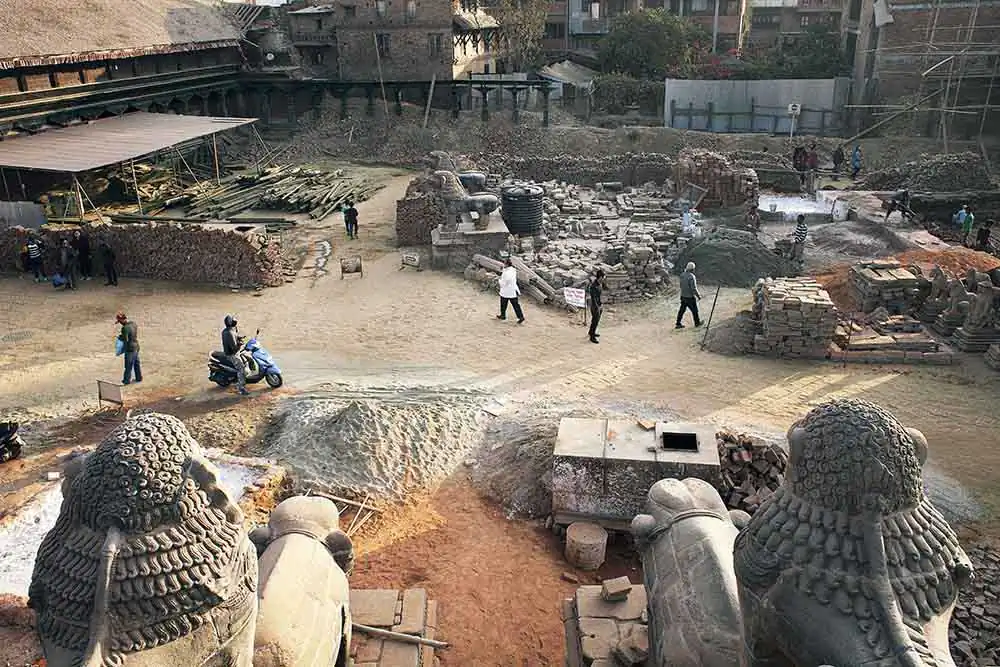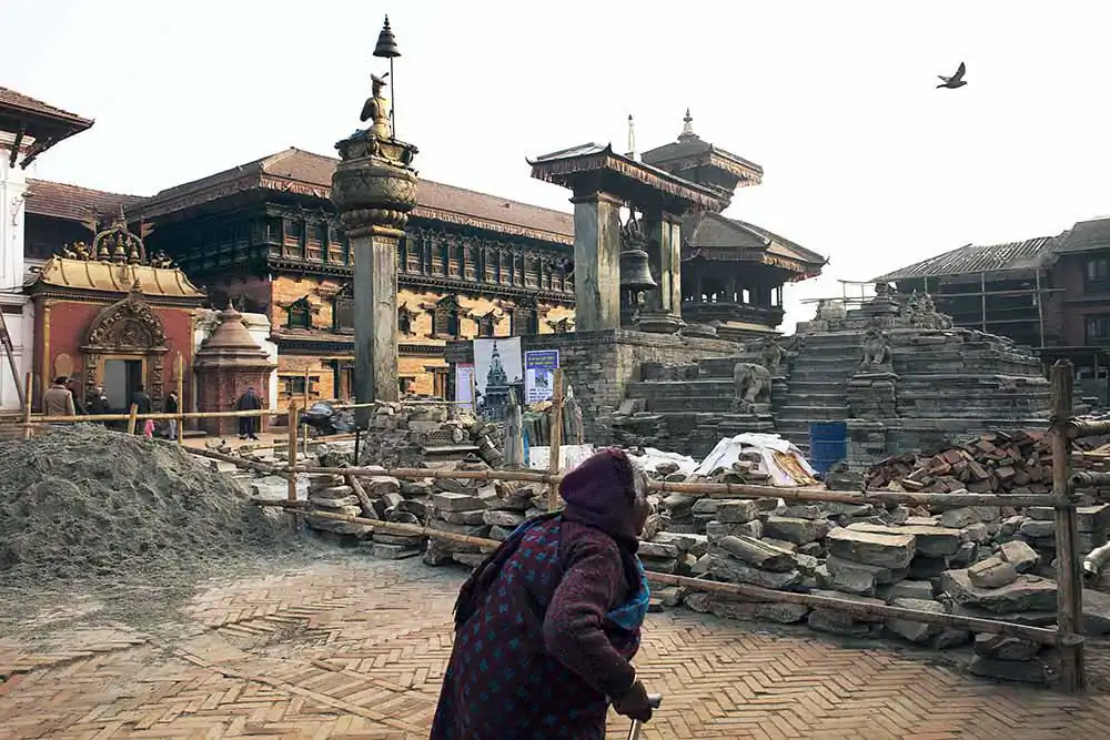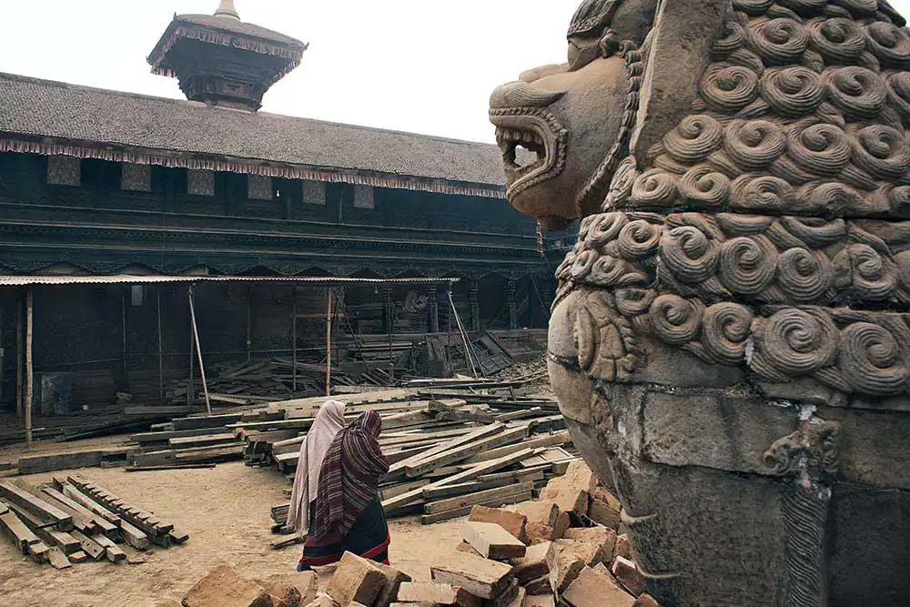 Dangerous and unfeasible, indeed. But, most of them do not have the funds to rebuild their homes. The only development is seen in the heart of the village. Apparently, it is where the Rato Machhendranath Temple should stand. In a remote valley where agriculture is highly regarded, the figure of Rato Machhendranath is known as a rain god and a food provider.In a country where more than 80% of the population is Hindu, religious monuments are symbols that are considered vital. The life evolves around the buildings that are believed to be representations of Gods and Goddesses. Therefore, a luminous ray of hope arose when Boudhanath, one of the largest stupas in the world located in the Kathmandu Valley was completed.