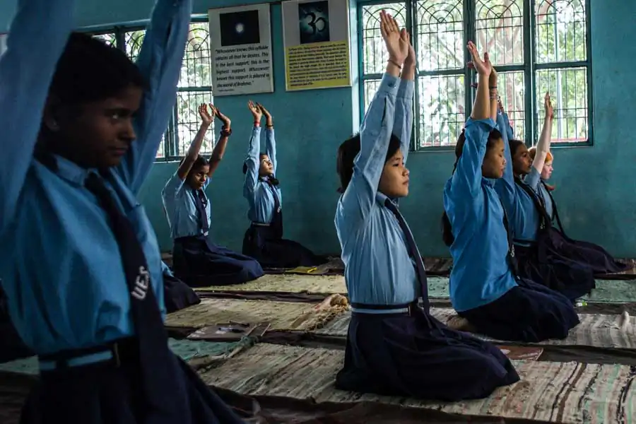 Ayurvedic massage on head. The curriculum combines traditional materials imposed by the Indian government as Mathematics, Science, Hindi, Sanskrit, English, History, Biology, Chemistry and Geography, with the ancient Indian disciplines of yoga, meditation and ayurvedic massage.