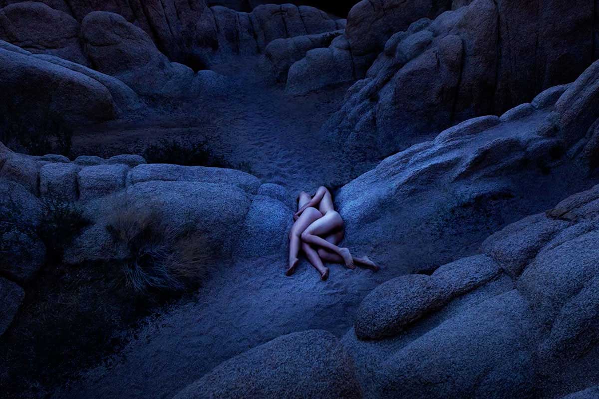 This project emerged from the realities of struggling with an end of a relationship that was salted dry through infidelity. After a complicated breakup, I found myself on a trip in the desert with a couple that was newly in love. Out of their affection, the arid desert, and my own desolate struggle, I found inspiration to create “Oasis”, a body of work that speaks about the lightness and darkness of love. The environments in these images were chosen mindfully and embody multiple meanings. When traveling through the desert, I became aware of the many optical illusions it can present to the naked eye. The desert background became the symbol of the seemingly perfect qualities a lover holds when first falling in love. The backgrounds surrounding the lovers are beautiful, yet dark, and are sometimes de-saturated. This alludes to how magical things look from a distance when love is first at hand, overlooking flaws in a burgeoning relationship. The otherworldly aesthetic of the landscapes propose the chosen isolation from the rest the world that lovers feel when together. There’s a quiet here; all the noise of the outside world is silenced when new lovers are unified. Their affection is simultaneously soft and clenching, emulating lightness and darkness coexisting in the series. [Official Website]