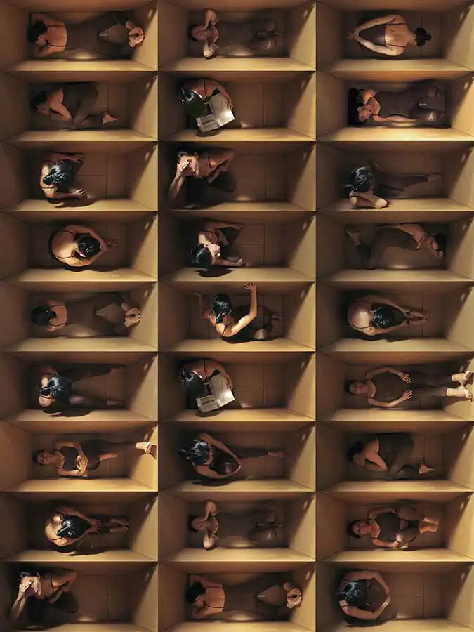 In the collective series addressed to the individual and their relationship with their environment. Forms of “dumping” as an individual are presented assuming social cloning, a manipulation of the nature, time and space of the subject. Speaks of freedom proposed by philosophers such as B. Spinoza.