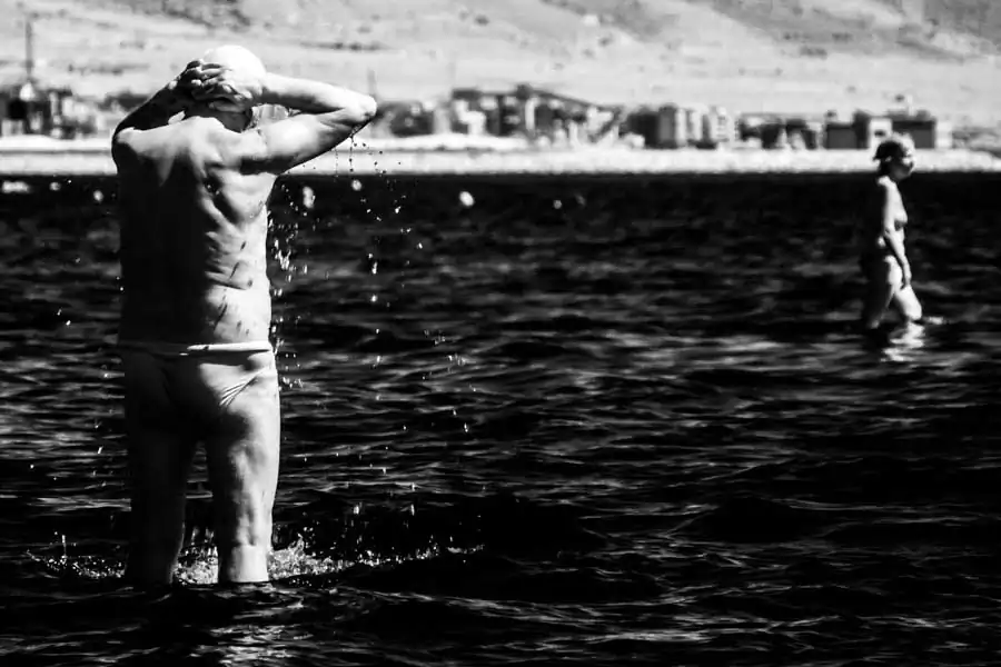 I used the infrared technique as it shows the signs of aging on the body, makes the sea like oil and access to the “not visible” spectrum of the light, almost a metaphor for our inability to observe what is also behind simple gestures made in an ordinary seaside day, when “normally” we should be able to be free from daily obsession. I believe that human represent the most important expression of “Map of Time”, but I think we will not be able to trace this time and store it, and that we will not have archives in the future who will talk about our lives.
