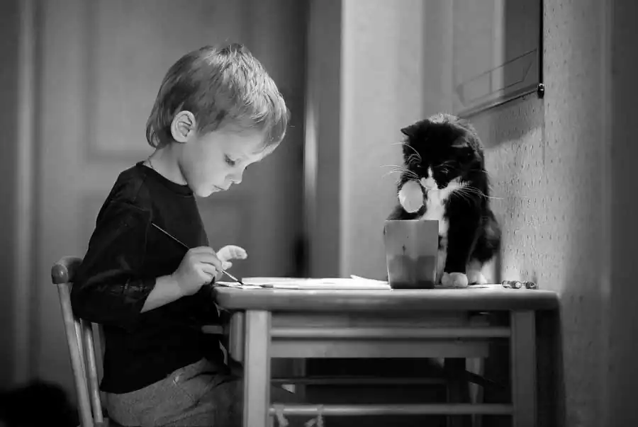 When everything is ready (the shooting process itself does not take much time), my little models have great experience, the right background has been chosen, soft music is playing, a ray of light shines, and a little bit of a miracle, even then there is still one more piece to complete my world of photography. Sometimes our cats peek into the frame of the shot, as they also love to be photographed, to play with children, and to participate in all that we do. This is how unplanned and spontaneous photographs are born.