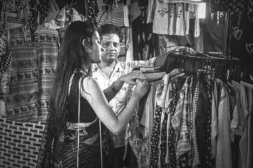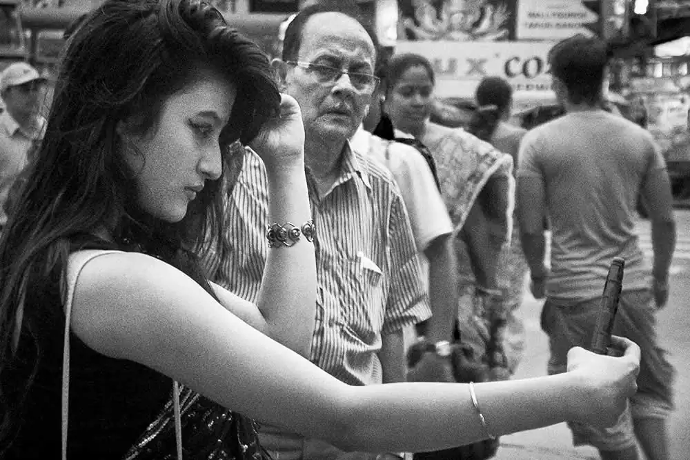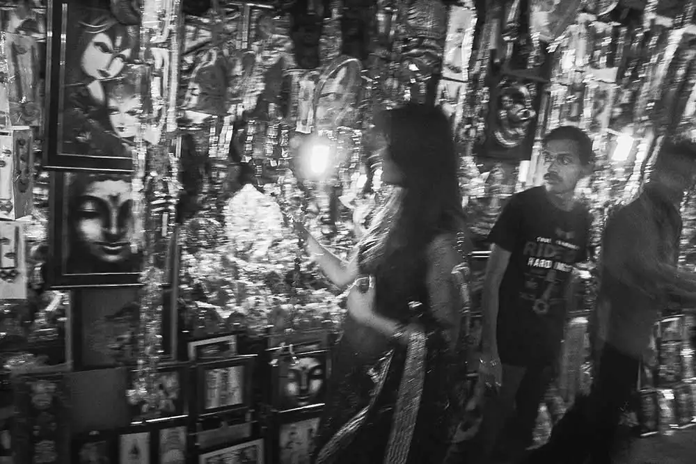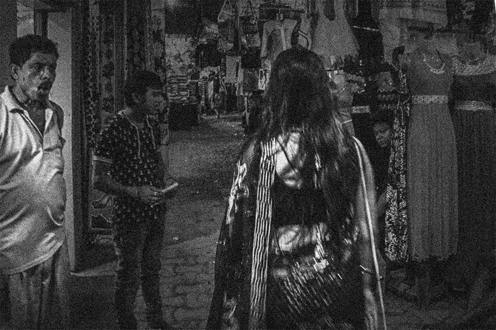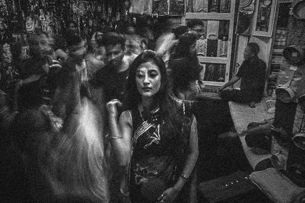 Gariahat,  is the  shopping hub of people in South Kolkata. From malls to street items it fits to be a common hub for people of all socio-economic backgrounds and thus was chosen.  The attire selected was a saree as it signifies an Indian woman as most women in India wear saree. None of the “onlookers” were posed or instructed in any way.