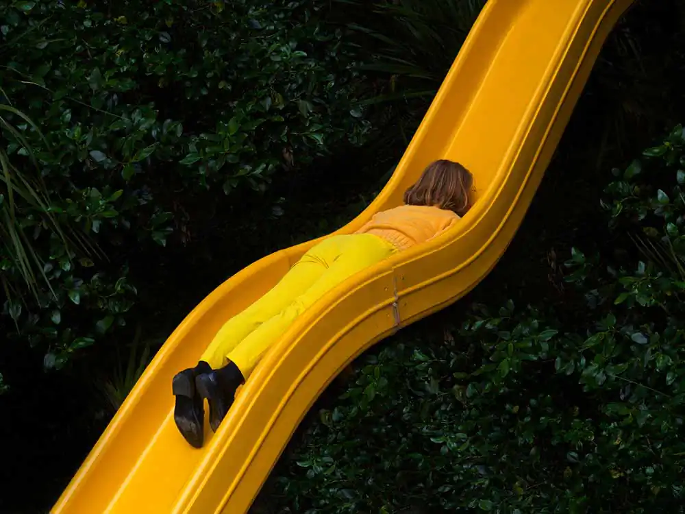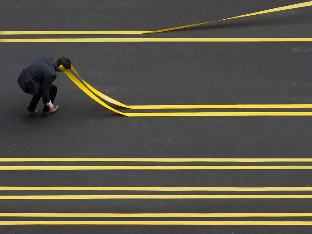 While his field of study was journalism, Ben Zank found a more direct means of expression in photography, after he discovered a Pentax ME Super in his grandmother´s attic. Submitting himself to the rigorous exercise of “one shot per day”, his images often conveniently stage himself as the main character. Using simple props such as yellow tape, Zank manages to bend reality to suit his own vision.