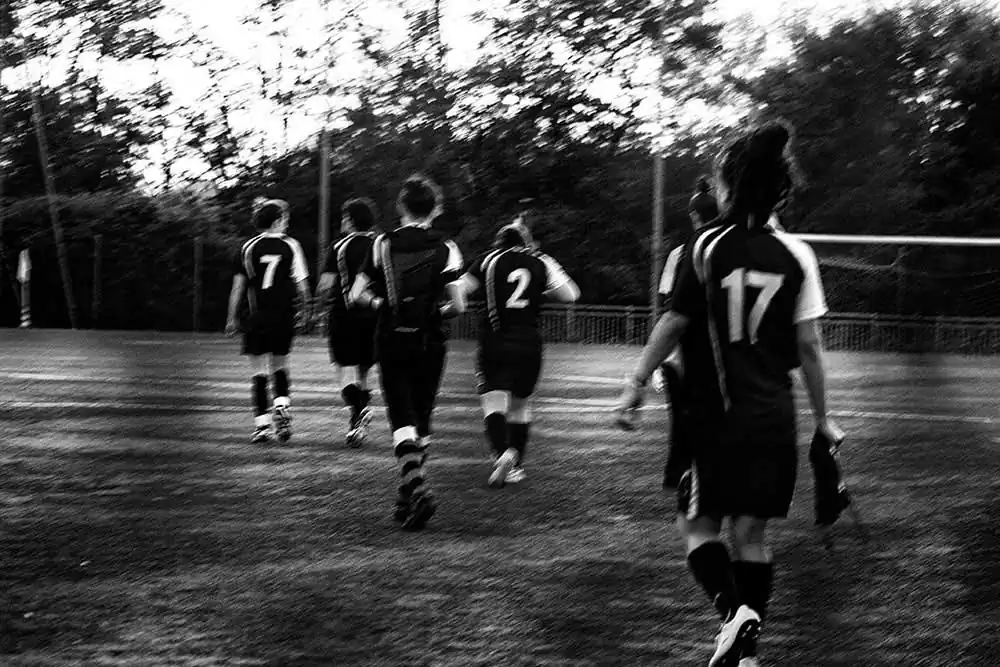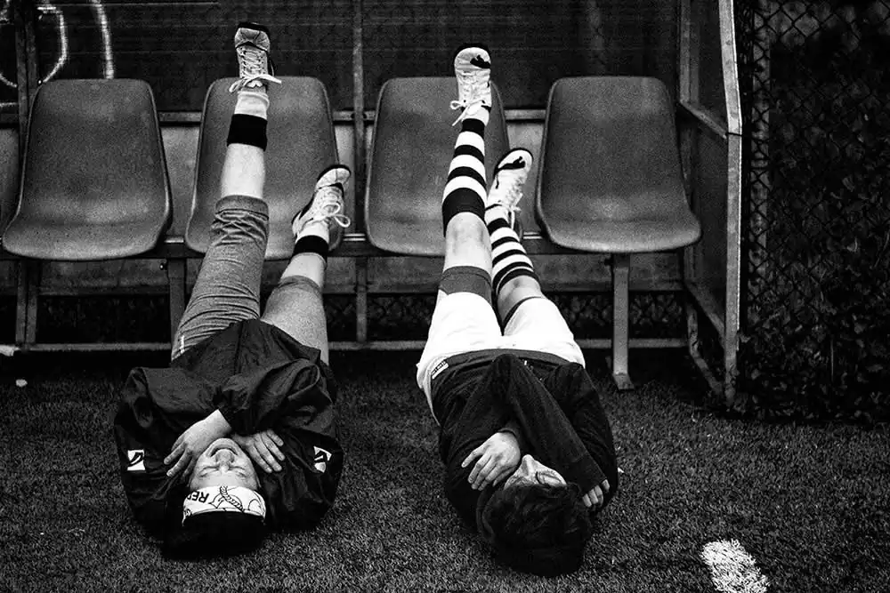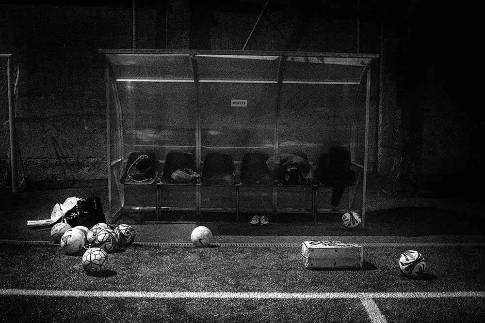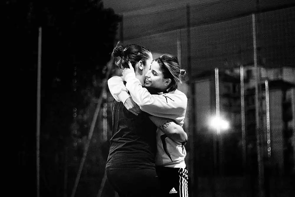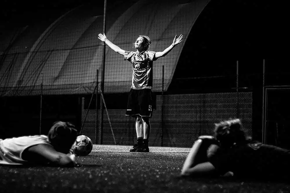 I overheard these sentences while shooting in the locker room describe the daily micro eeality of the female universe: different interests, cultures and ages melting in a sport that is usually played by men. For the alveare team, football is a “therapy” as Gaia says, it is solidarity: sharing joy when you score a goal and tears when you let one in. All together while having fun. Contracted muscles, Swollen veins under young Skin, scraped knees, tattoos mixed with hugs. You fight, laugh, strain, listen… And finally play football.