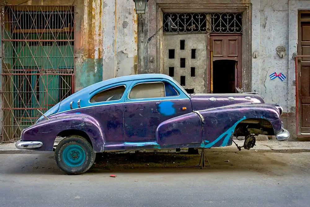 It’s not that the Cubans wanted to keep a bunch of old American cars running forever. They had no choice. The US Embargo restricted new American cars from arriving and helped to impoverish the island, making many material purchases out of reach. Like the Johnny Cash song “One Piece at a Time”, they use their ingenuity, making parts and in some cases mixing and matching parts from different years and models in order to keep them running. Now considered a national treasure, some are meticulously restored, usually seen as cabs plying tourist hotels. Others, usually in non-tourist working areas have a patina made from paint layers and hammered metal. They often have an artistic beauty of their own.