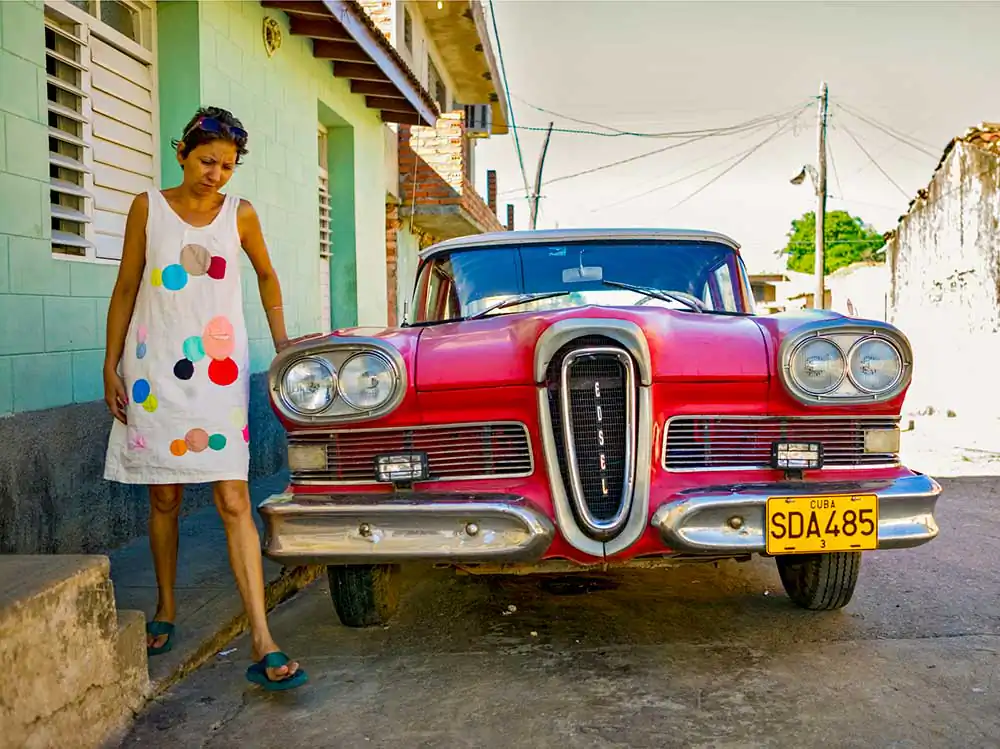 These photographs have been made since 2004, during six visits to Cuba. While walking the streets photographing people and architecture, I kept an eye out for the Cuban American cars that ply the streets of Havana, Trinidad, Camaguey, Cienfuegos, and Santiago. Photographed as a typology of environmental car portraits from a similar point of view, they also give a feel for the streets of Cuba.