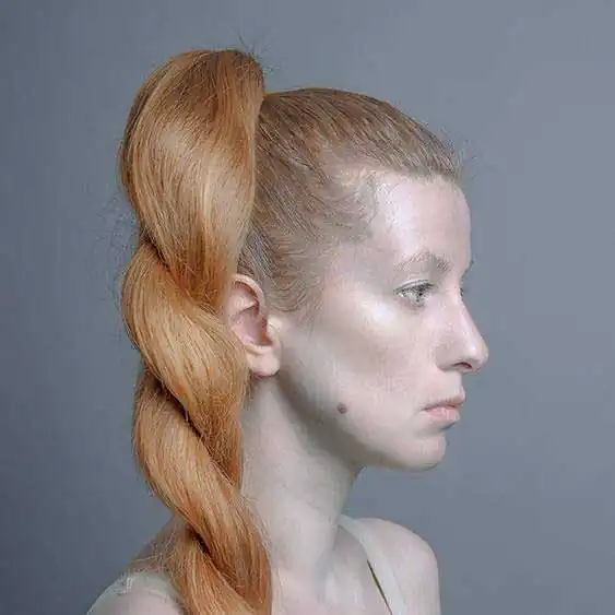 One day I saw the flowering dandelions in my garden and had the idea for this picture. The homogeneous surface reminded me of a brightly intense fabric and I imagined how I can bring those colors and shapes into everyday life and what I can replace it with. We are surrounded by so many things with supposedly established and ordinary purposes. So I came up with the thought to change this by rearranging the flowers and giving them a new purpose in our day-to-day life. The idea to wear flourish flowers as hair accessories is nothing new. But I wanted to go a step further and not just use single flowers. They shouldn’t just be an accessory for the hair but rather become the hair by themself and be the main body decoration. Furthermore, I wanted to bring the rapid evanescence into it by using a mixture of fresh and withered flowers.