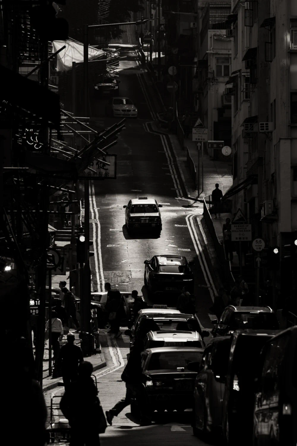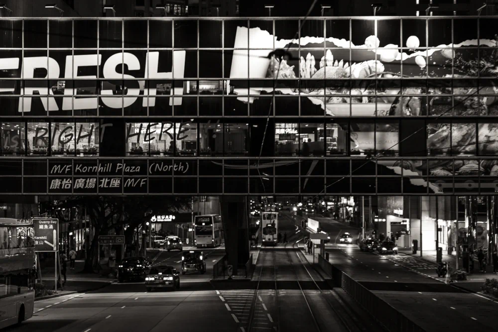 What struck him most during this visit was the unique behavior of light within such a vertical environment. In most cities, sunlight is constant. In Hong Kong, it becomes a rare visitor at street level. Due to the sheer height of the buildings, streets remain in a cool twilight for much of the day.