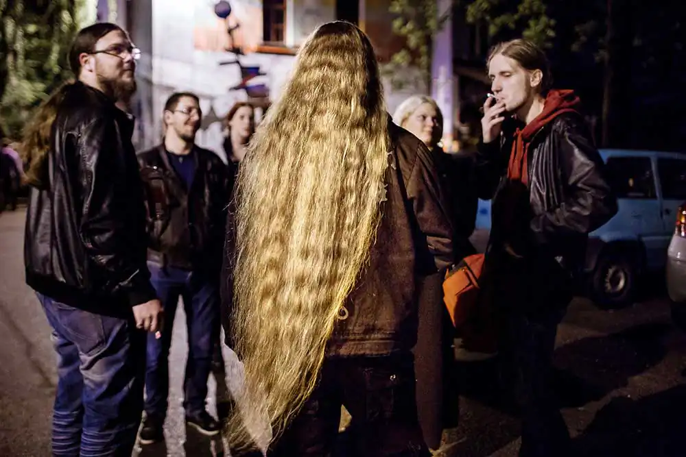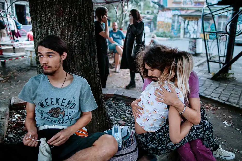 Club Tiffany is a gay club and a safe space for the LGBT community; One of the major yearly events is a Pride parade for which they organised a drag show fundraiser.Basketball and ping pong tournaments were organized by Student Radio, promoting sport and physical activities.A small part of the Slovenian National Museum is also located on Metelkova where they keep large archives of paintings in an underground depot. Dr. Mateja Kos is the museum’s curator for paintings, ceramics and sculptures.A young couple hugging on a Friday summer evening right before the weekend when Metelkova turns into what it’s best known for, a party venue. Lots of different clubs attract different subcultures from punks, metalheads, electronic enthusiasts etc.