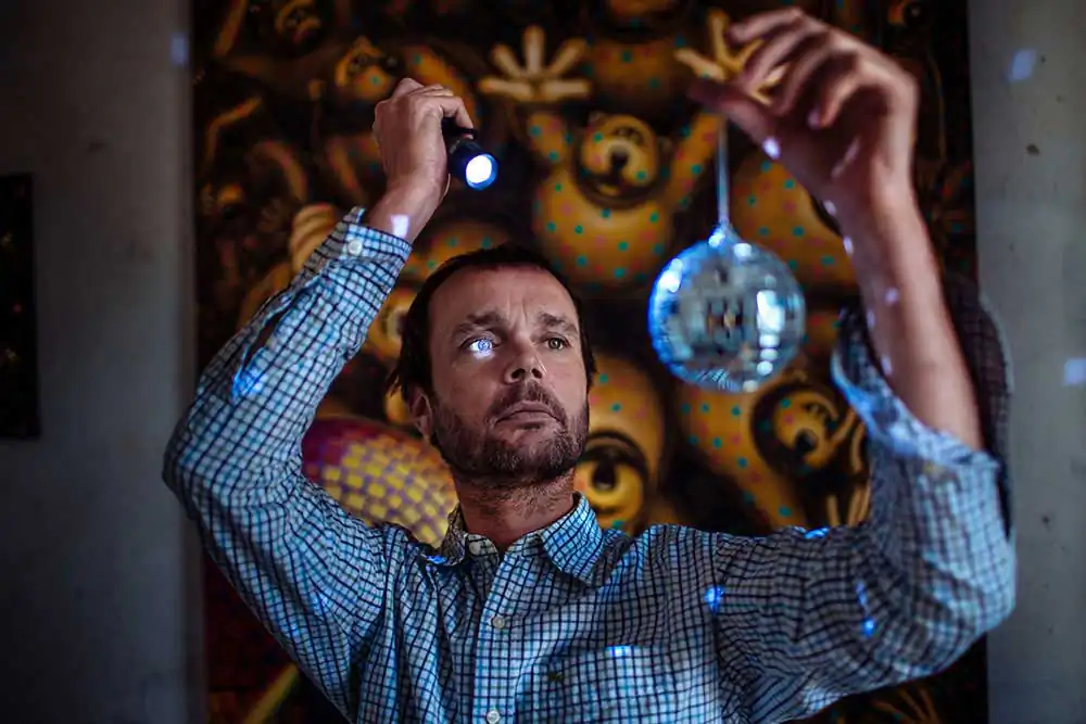 Painter Vladimir Leben during a study of light for his famous series »disco bears«.Northern part of Metelkova was occupied by artists who set up studios in buildings which were renovated in strong artistic notes. Today, this part of Metelkova is the most known among locals and tourists.Artist Jaka Mihelič in his workshop where he welds different objects from bikes, art ashtrays and sometimes props for shows and movies.