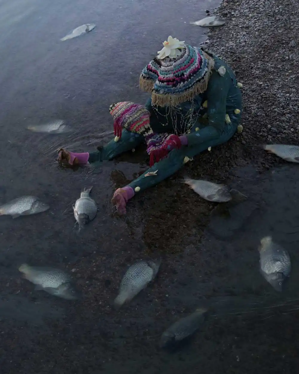 This particular species Elena encountered. In the early days, the skin tones of the amphibian changed from purple to ginger, one leg turned blue and the toes were gray like sand. Elena examined the body of an amphibian. Inside its belly, she found three bicycle wheels, four rusty boats, and one carpet cracker. As a result, heavy stuff poisoning and fever. The woman began to take care of him. She taught him to sew, comb and finish the crumbs after eating. Elena gave the foundling a name – Apă [ah’pə], which means ‘water’ in Moldavian language. Elena believes that we all came out of the water. Nowadays, every Friday they collect trash together on the riverbank and perhaps one day they will find a new egg.