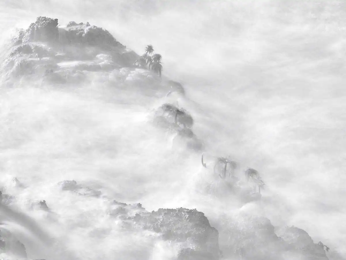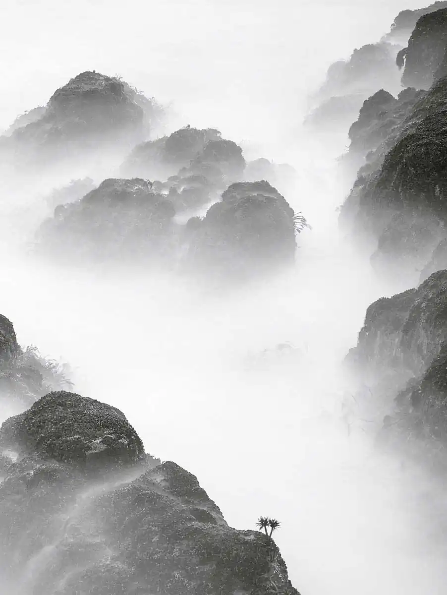 As a photographer I crave to create my own vision that is quite different to the world around me. I want to cast away the visual anchors that viewers rely on so they can free their imaginations. I want them to feel the spirit of the mountain by not seeing the mountain. The images of towering pinnacles are actually quite small vignettes in a crashing sea. The power of the mountains and the power of the sea become one for the viewer.