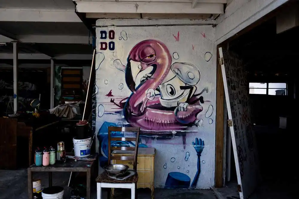 It was in 2016 that the young man left his real estate profession to revive his grandmother’s house, in order to make it a moving art gallery, a place of sharing for artists from around the world. (for whom he will play the role of managing the time of the journey) but also a lung for his community … Last December when Art Basel was in full swing, he welcomed: graffiti artists of multiple nationalities, notably the Swiss Sèyo, pioneer of the discipline in Europe; but also Ignacio, a homeless man that Fabian took under his wing and with whom he exchanges help in the house for a roof and food, or James, a childhood friend recently released from prison and resident of “Esquina de Abuela” the time of a new start under the exclusive condition of not succumbing to his old demons.